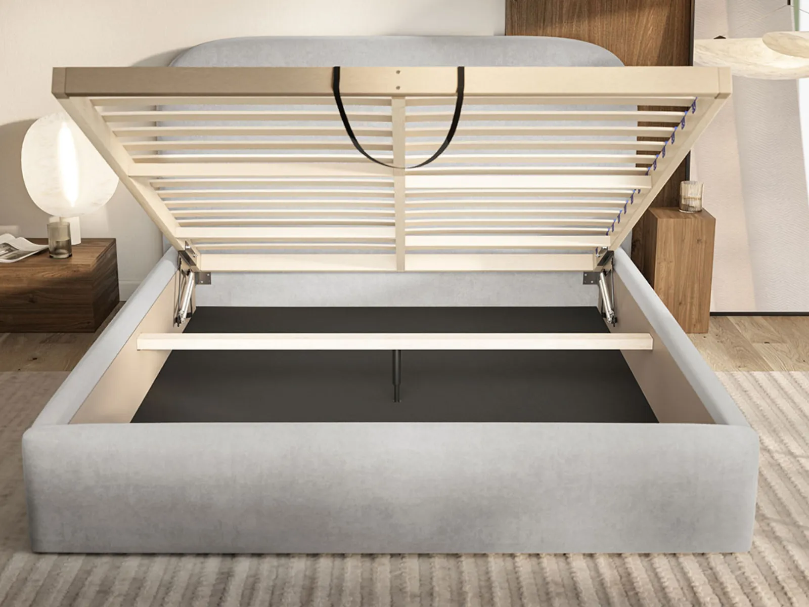 Dużym atutem modelu jest pojemnik na pościel, który daje dodatkowe miejsce do przechowywania. To rozwiązanie pomaga lepiej wykorzystać przestrzeń i utrzymać porządek w sypialni bez potrzeby dokupowania dodatkowych mebli.