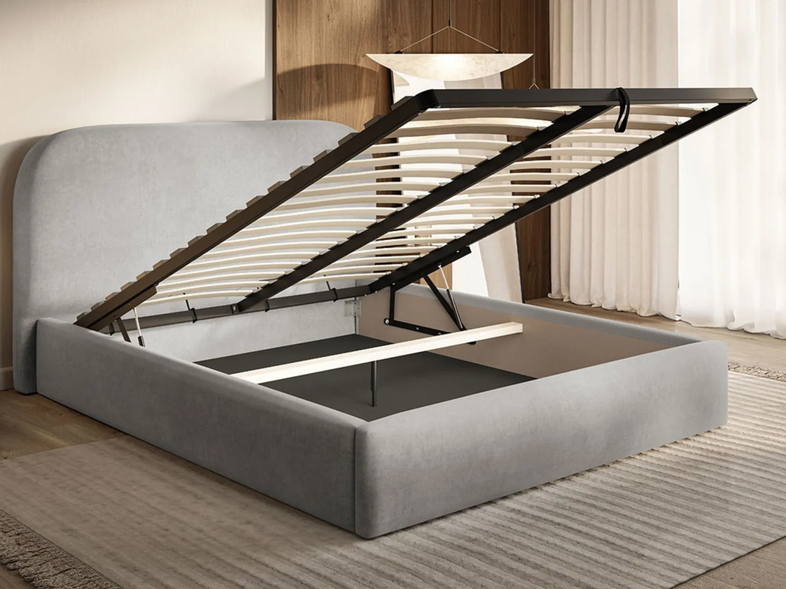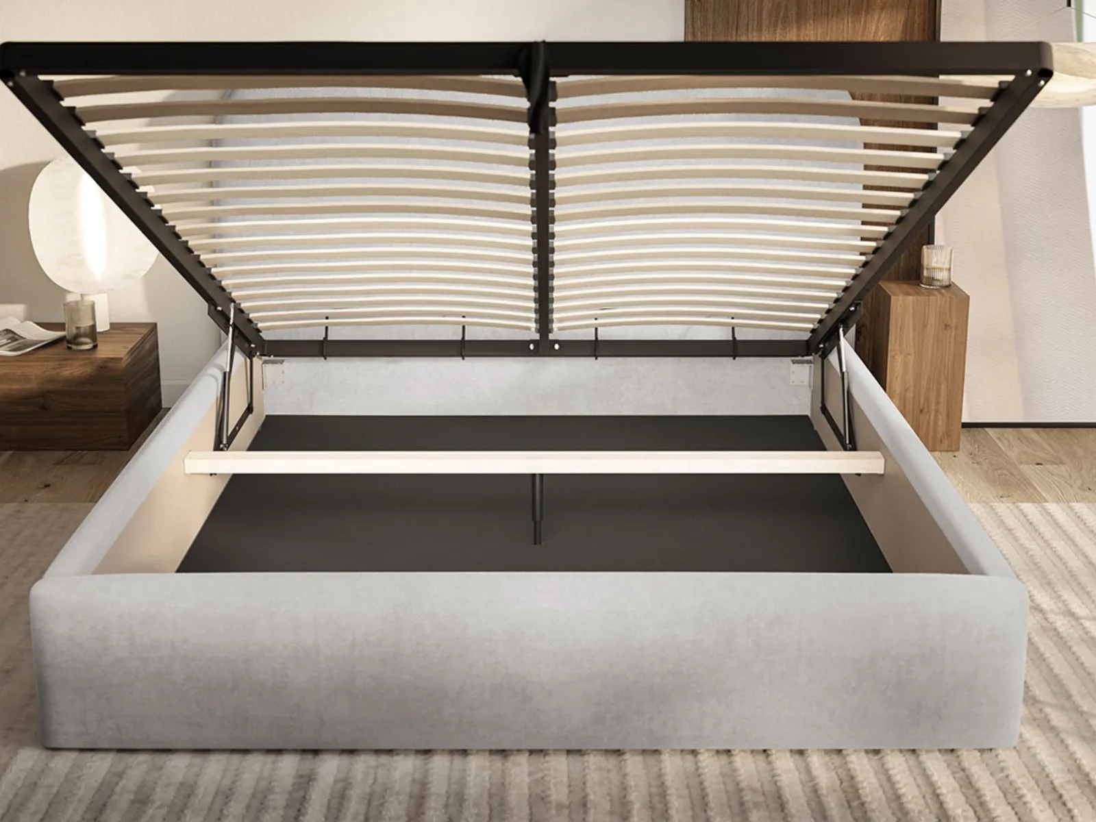 Łóżko Nadia Slim 160x200 cm z pojemnikiem na pościel to funkcjonalne rozwiązanie do każdej sypialni. Schowek pod stelażem daje dodatkowe miejsce do przechowywania i pomaga utrzymać porządek.