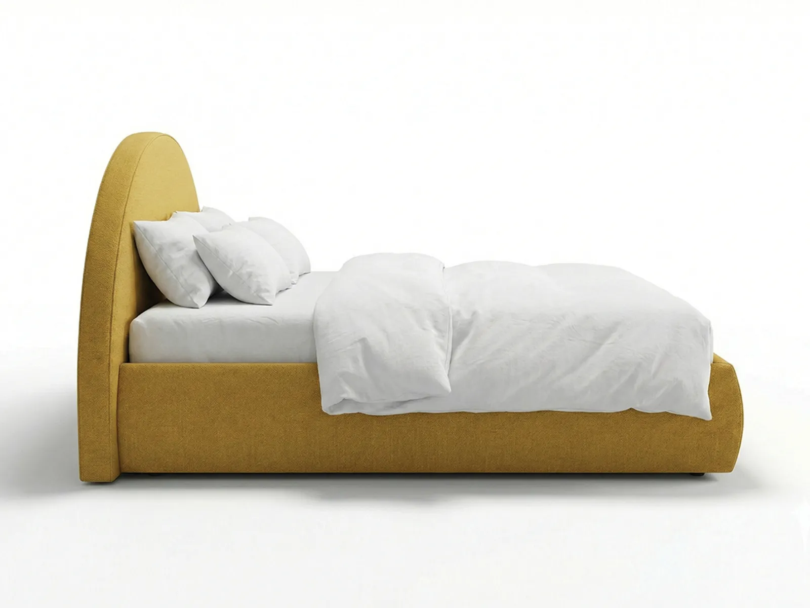 Łóżko tapicerowane Nira 160x200 cm to stylowe i funkcjonalne łóżko do sypialni, które łączy nowoczesny design, wygodę snu i praktyczne rozwiązania do przechowywania. Charakterystyczny, zaokrąglony zagłówek oraz miękka, tapicerowana forma sprawiają, że model świetnie prezentuje się w nowoczesnych, eleganckich i przytulnych wnętrzach.