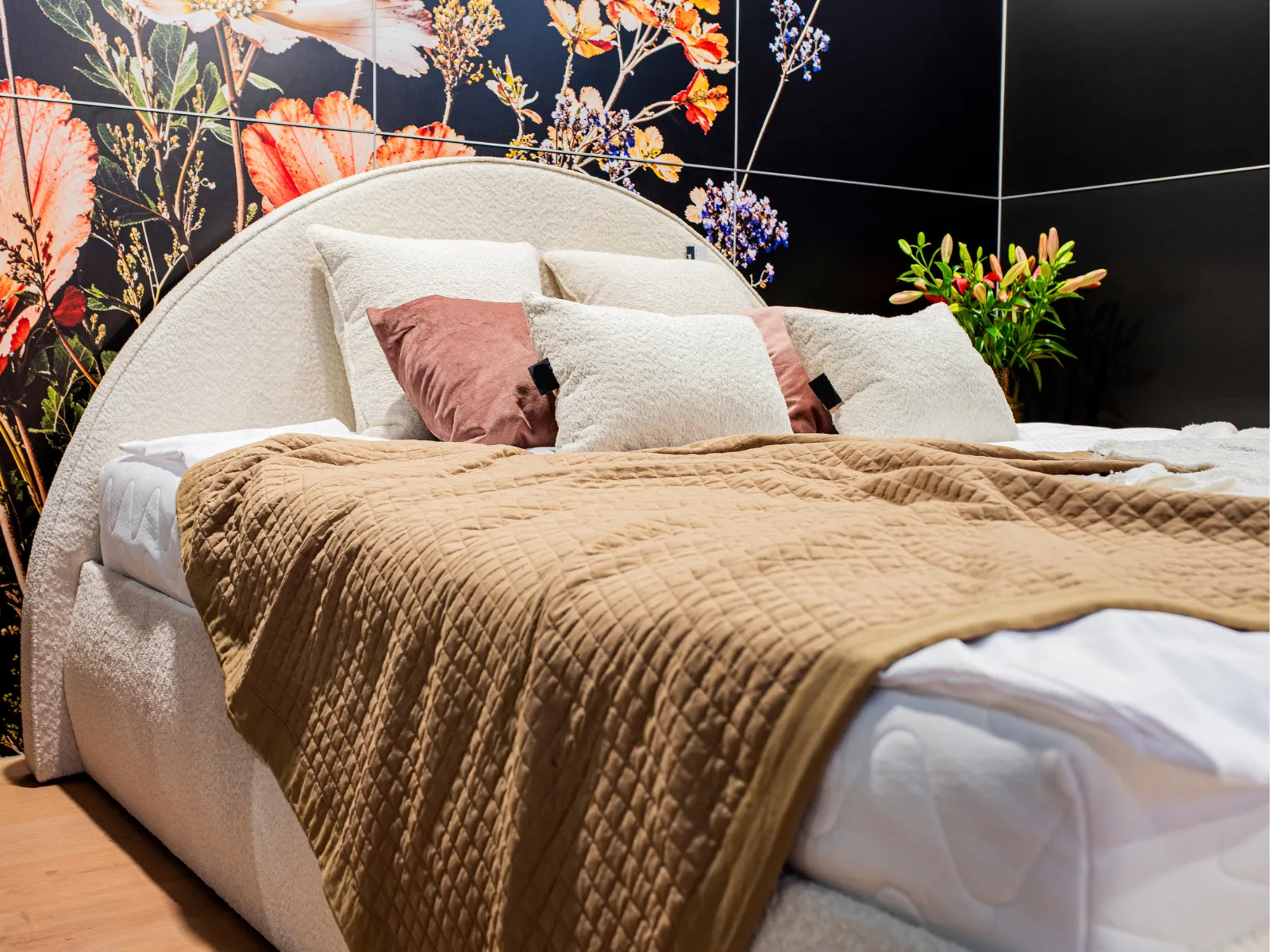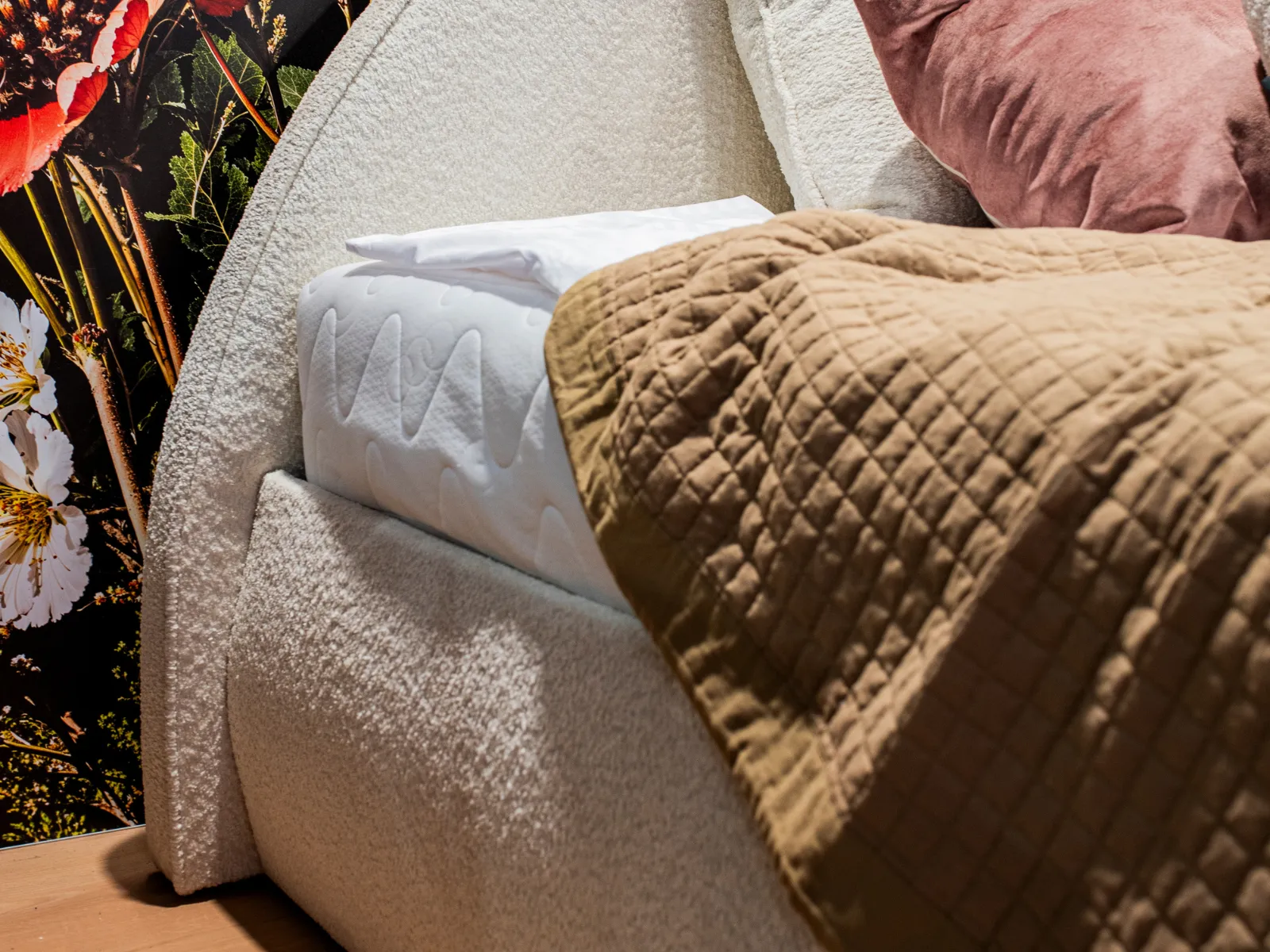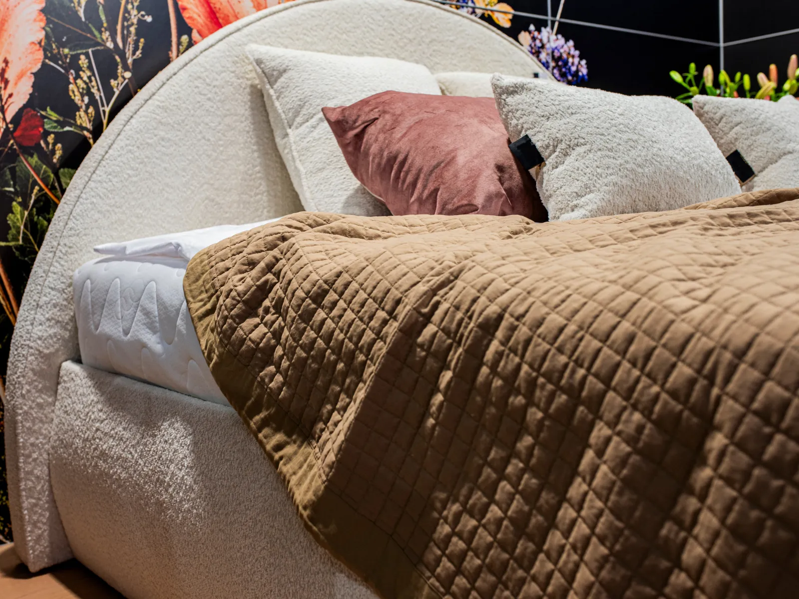 Łóżko Nira wyróżnia się subtelną, obłą linią zagłówka i prostą, elegancką bryłą. To nowoczesne łóżko tapicerowane, które pasuje do wnętrz minimalistycznych, loftowych, japandi, modern classic i glamour. Miękkie wykończenie oraz dopracowane proporcje sprawiają, że model prezentuje się luksusowo i podnosi estetykę całej sypialni.
