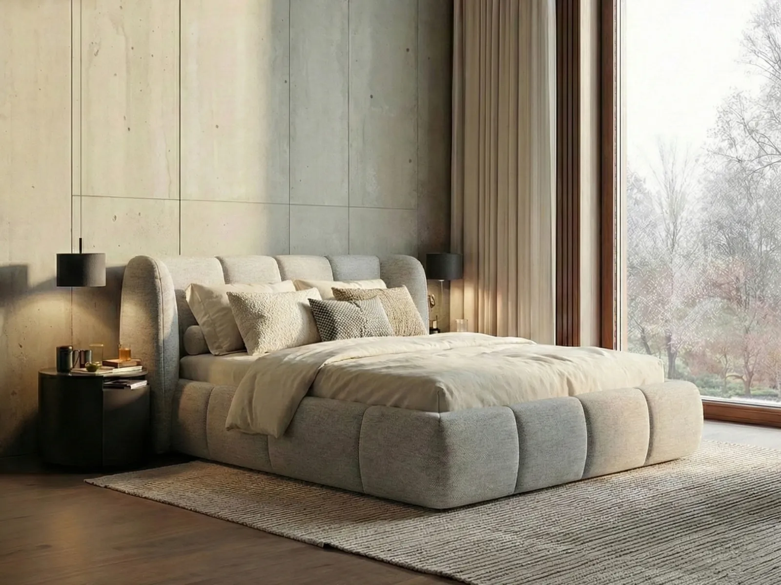 Łóżko Orelia wyróżnia się miękką, nowoczesną bryłą oraz dekoracyjnym podziałami, które nadają całości elegancki i bardziej wyrazisty wygląd. To nowoczesne łóżko tapicerowane, które dobrze prezentuje się w aranżacjach minimalistycznych, modern classic, loft, contemporary i glamour.
