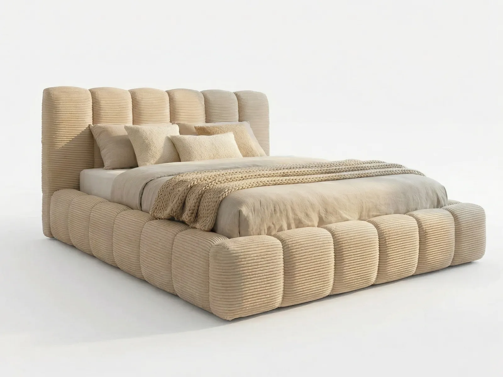Łóżko tapicerowane 160x200 ROSA SLIM z pojemnikiem i stelażem beżowy sztruks tkanina do wyboru