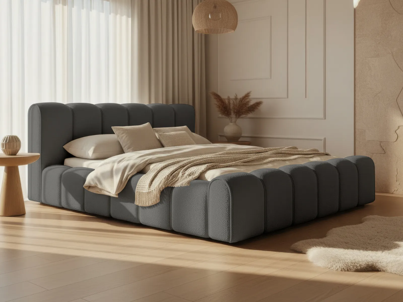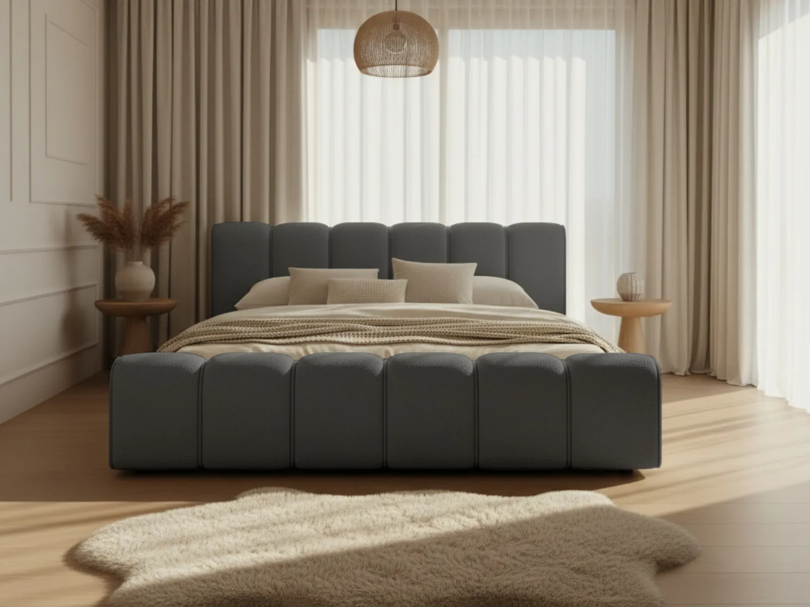 Nowoczesne łóżko do sypialni - styl japandi i modern classic