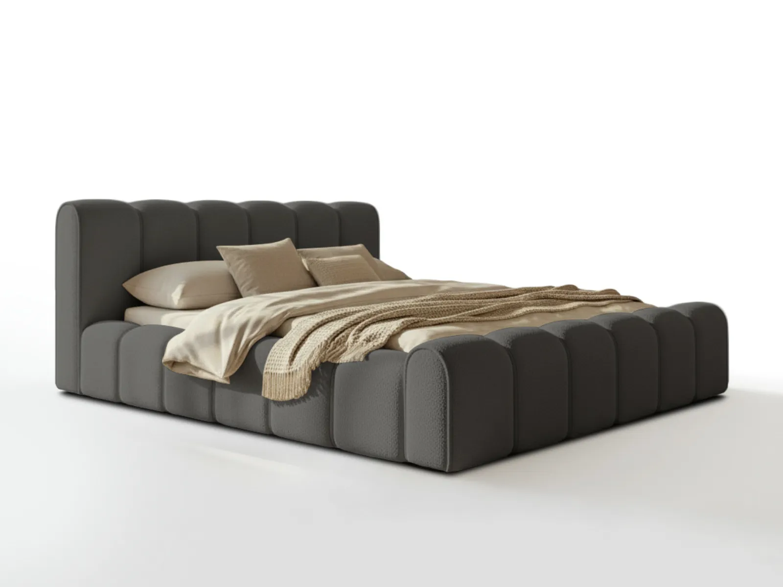 Szare łóżko tapicerowane Alviero to świetny wybór dla osób poszukujących nowoczesnego łóżka do sypialni o eleganckim, ponadczasowym charakterze. Uniwersalny kolor szary doskonale komponuje się z różnymi aranżacjami wnętrz, a praktyczny pojemnik na pościel zwiększa funkcjonalność mebla. Solidne wykonanie i wysoki komfort użytkowania sprawiają, że jest to łóżko tapicerowane idealne do codziennego spania.