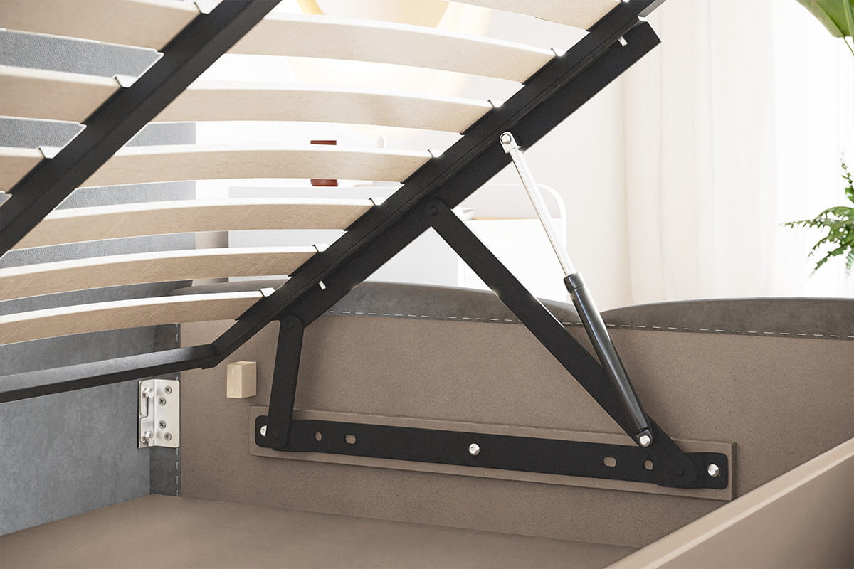 Łóżko tapicerowane 140x200 Nela szare z pojemnikiem na pościel i stelażem