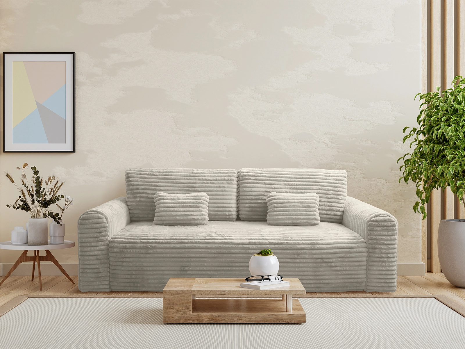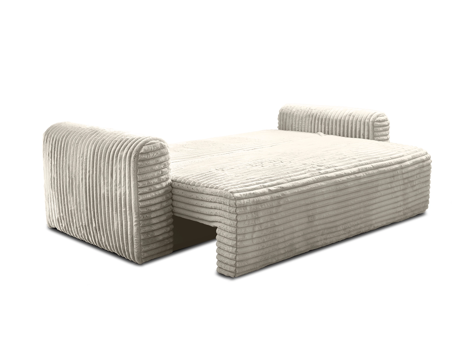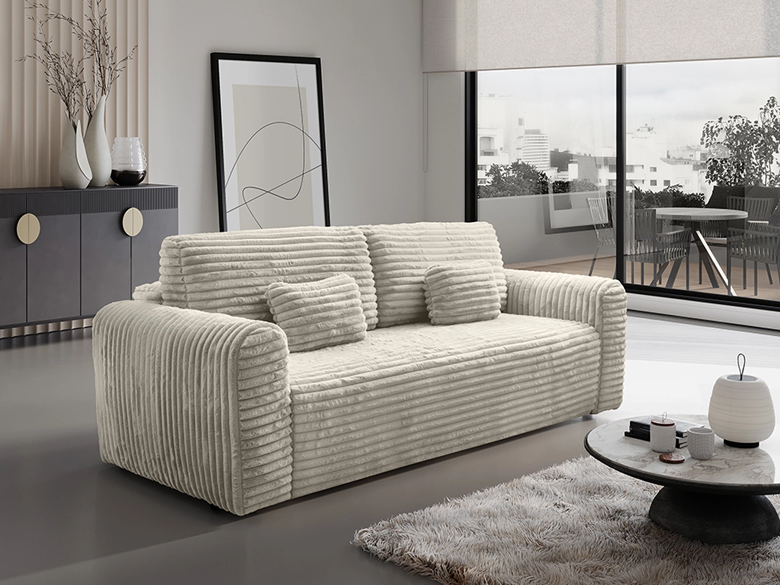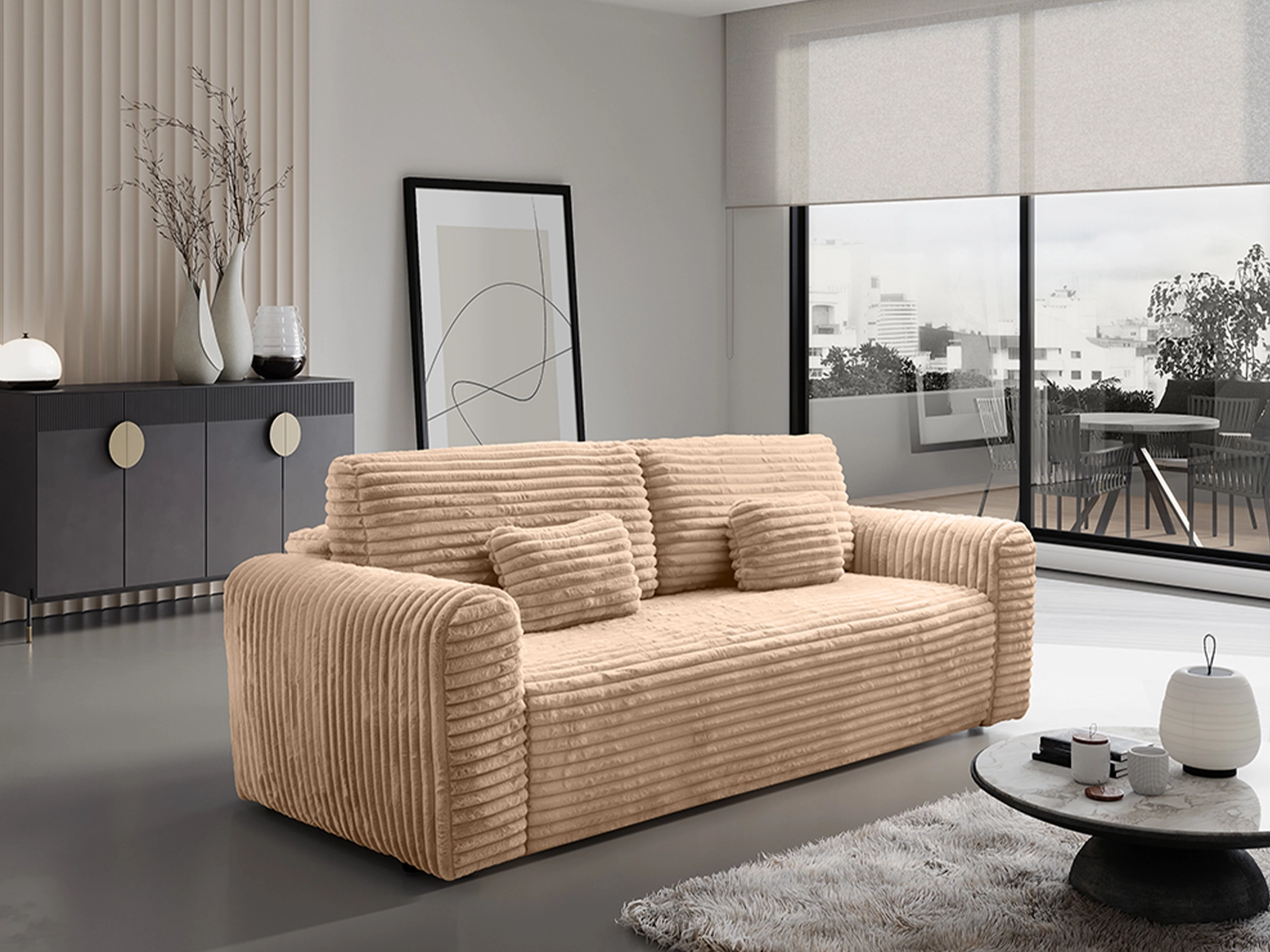 Kanapa z funkcją spania 255x108 FRESSIA beżowa tkanina z pojemnikiem na pościel