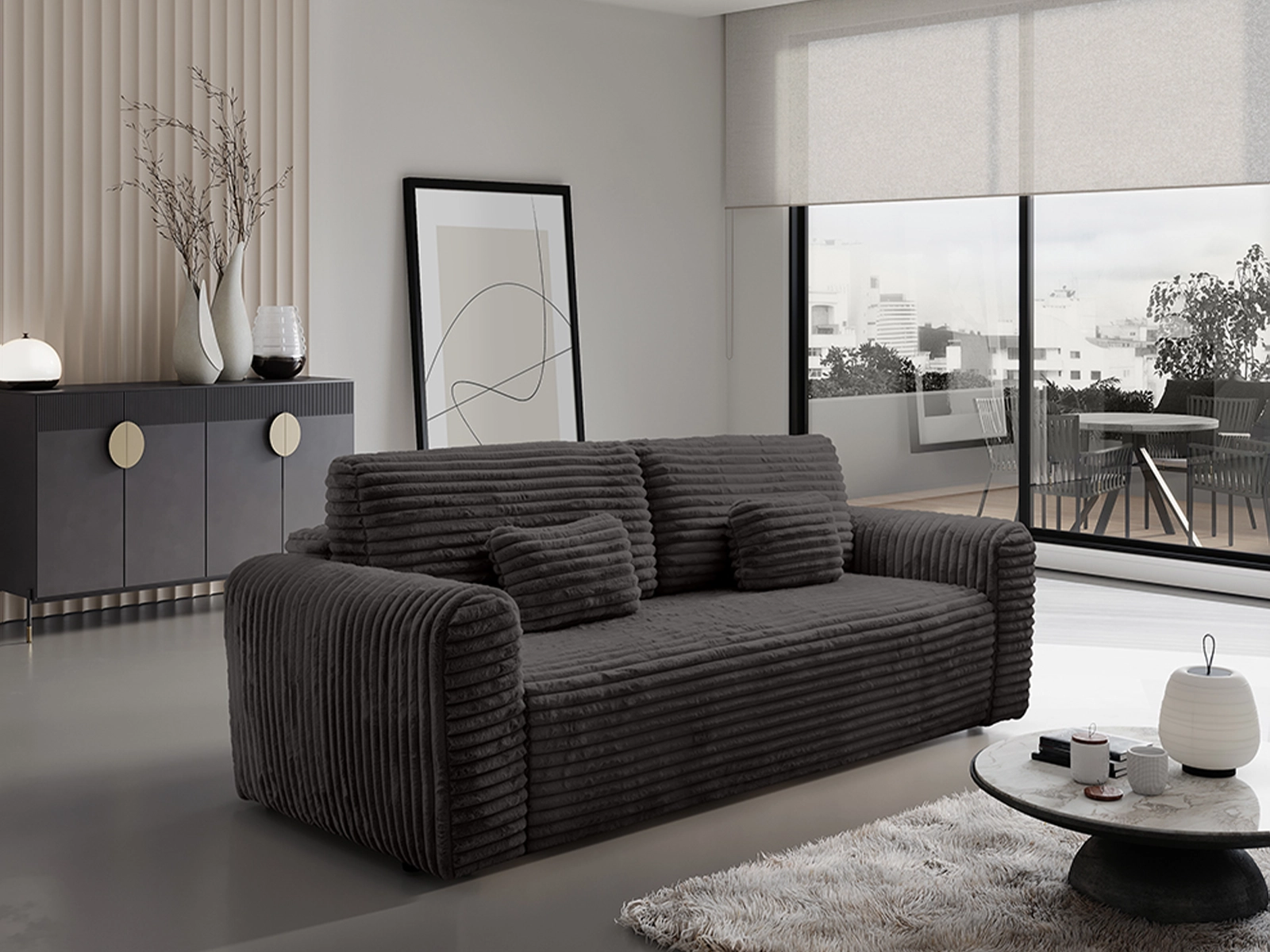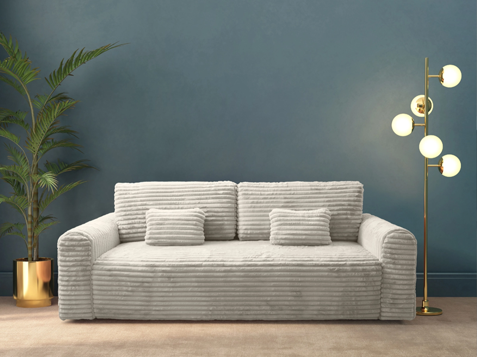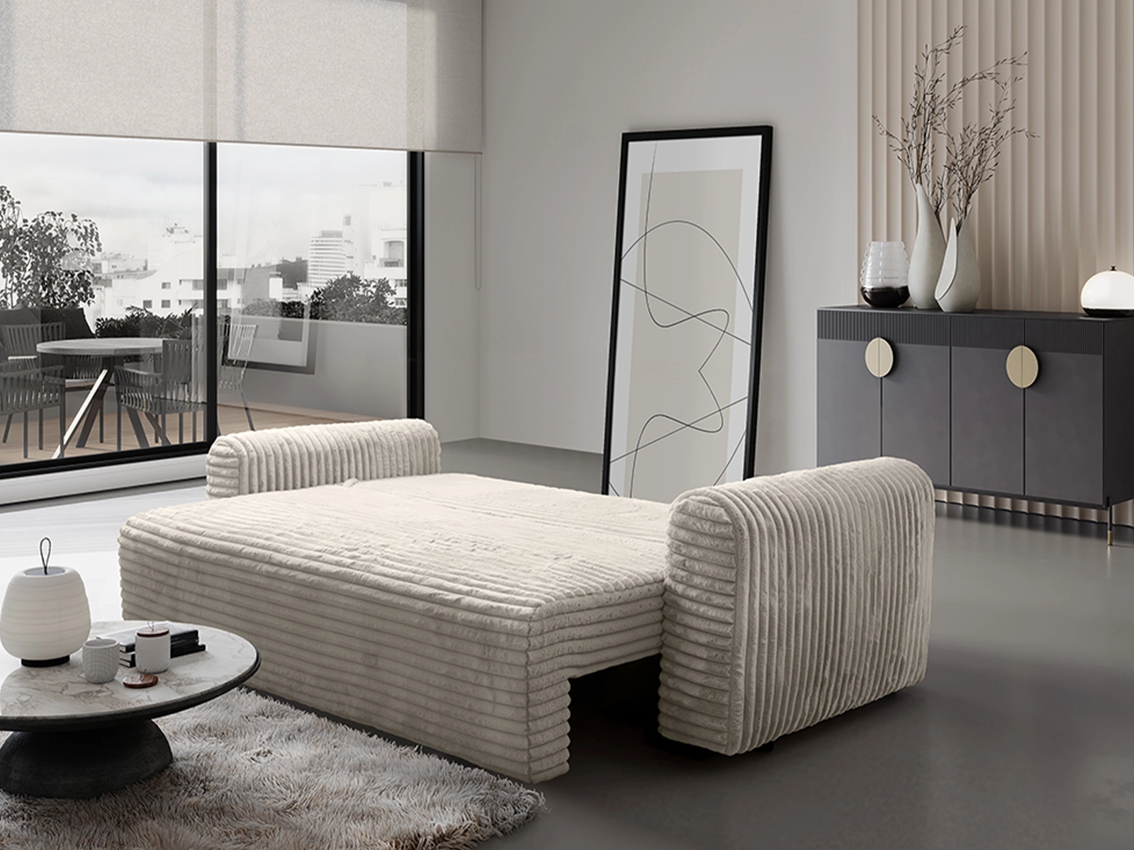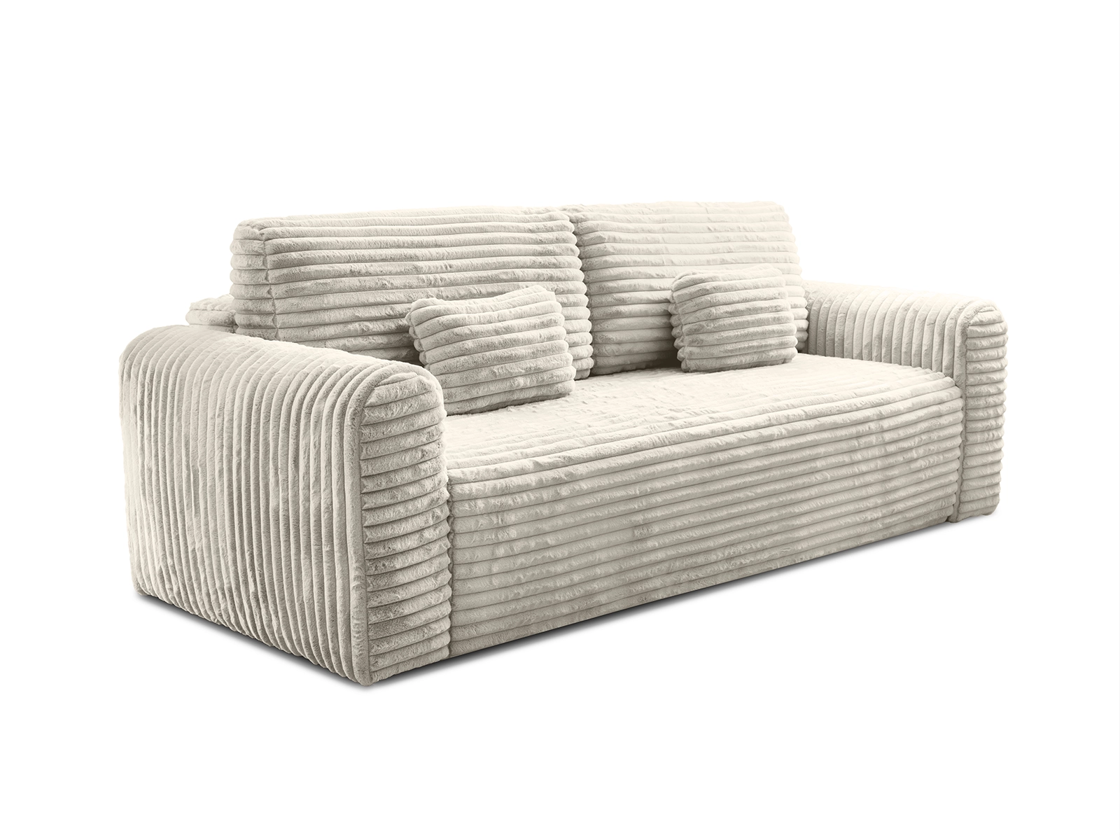 Kanapa z funkcją spania 255x108 FRESSIA beżowa tkanina z pojemnikiem na pościel
