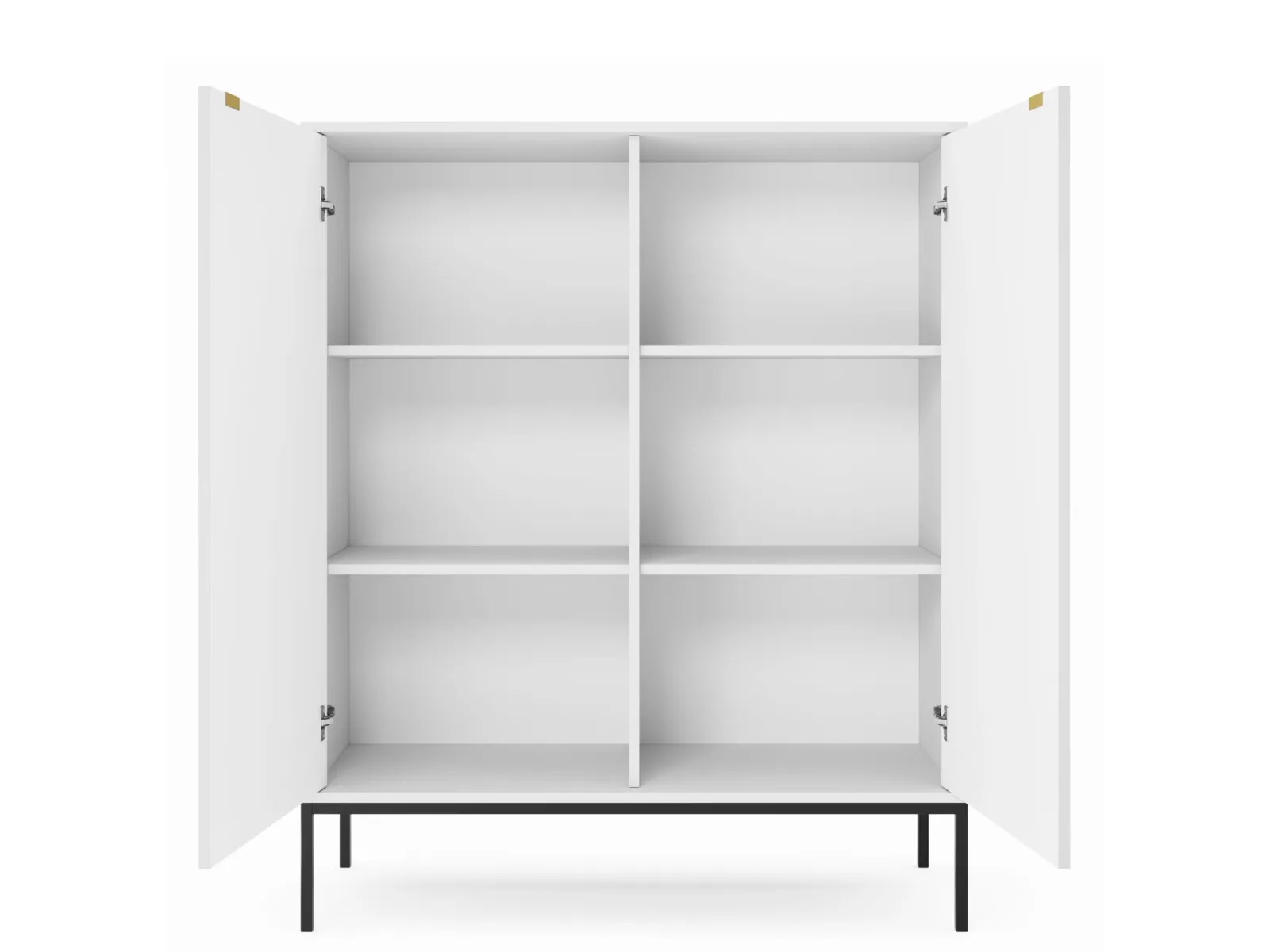 Dzięki przemyślanemu układowi – dwóm pojemnym szafkom z półkami – komoda Bari oferuje mnóstwo miejsca do przechowywania. Bez trudu uporządkujesz ubrania, dokumenty lub inne domowe akcesoria, dbając o porządek i estetykę swojego salonu, sypialni czy przedpokoju. Elegancką, lekką formę podkreśla czarny metalowy stelaż, który nie tylko nadaje meblowi nowoczesny charakter, ale także umożliwia wygodne sprzątanie przestrzeni pod komodą.