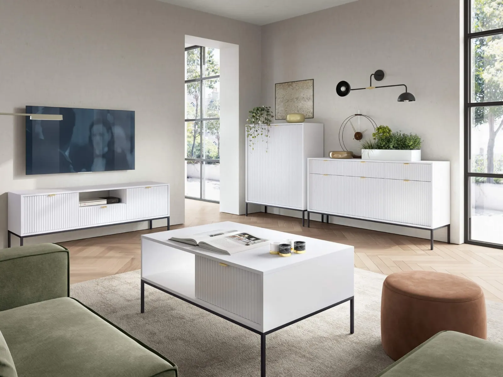 Do wyboru są dwie eleganckie wersje podstawy – czarna lub złota, które doskonale komponują się z komodą w kolorach czarnym, białym, szarym i zielonym, dodając każdemu z tych odcieni unikalnego charakteru i subtelnej klasy.