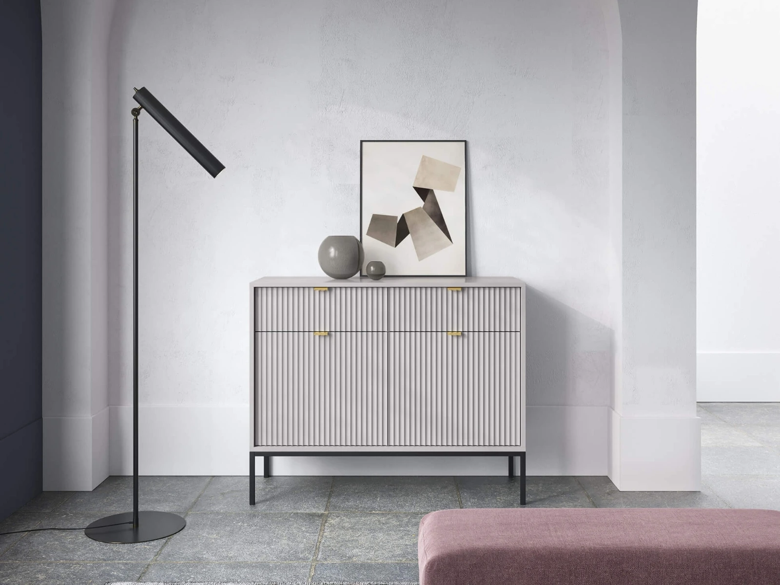 Do wyboru są dwie eleganckie wersje podstawy – czarna lub złota, które doskonale komponują się z komodą w kolorach czarnym, białym, szarym i zielonym, dodając każdemu z tych odcieni unikalnego charakteru i subtelnej klasy.