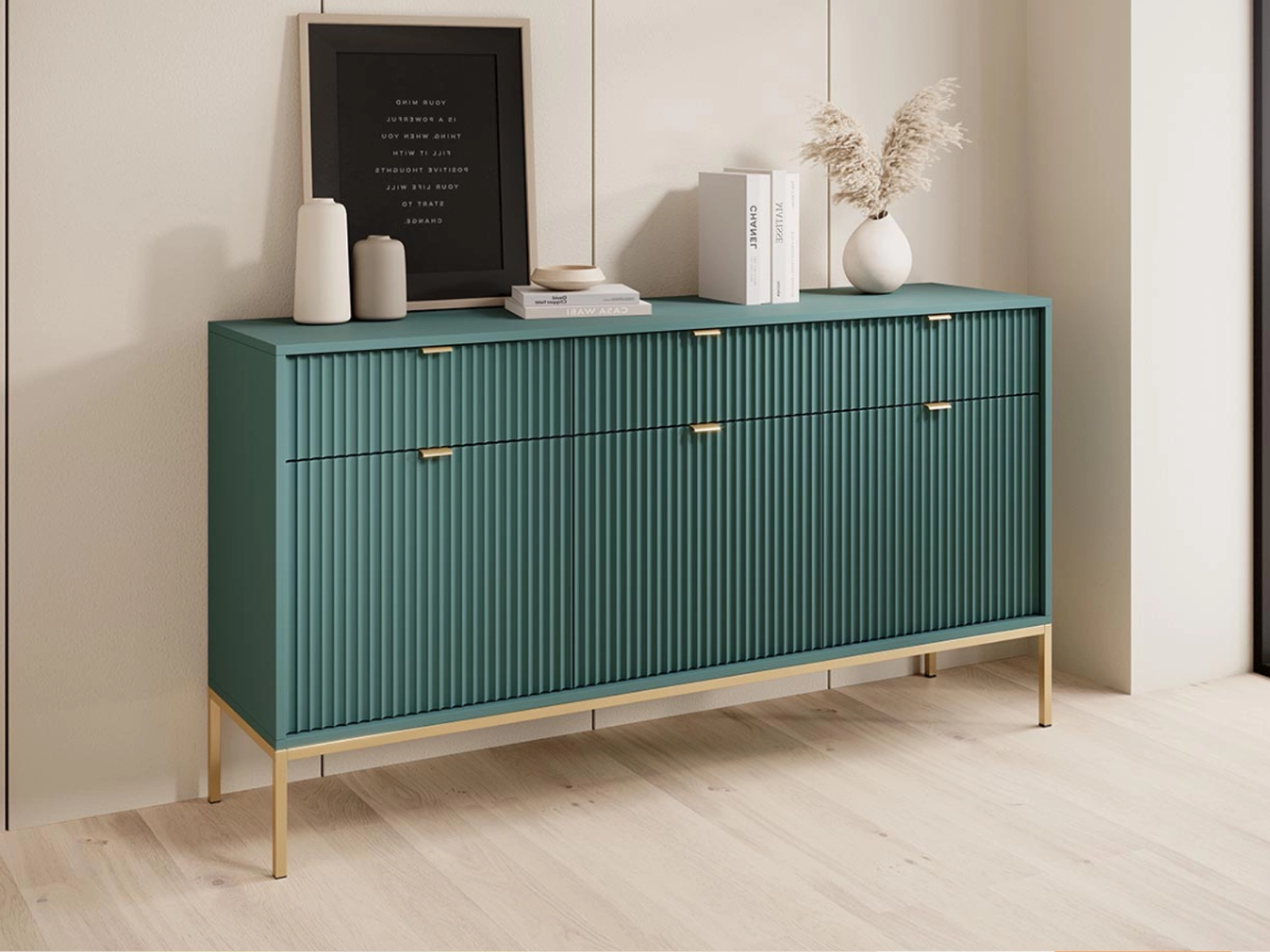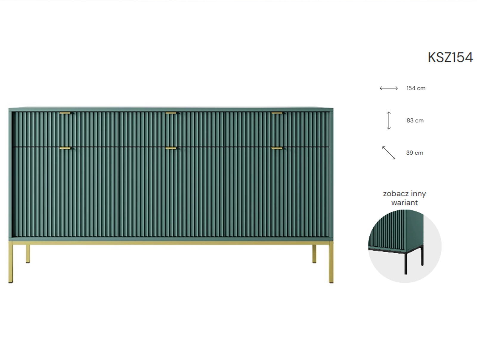Komoda 154x83x39 cm BARI KSZ154 zielona złote nogi