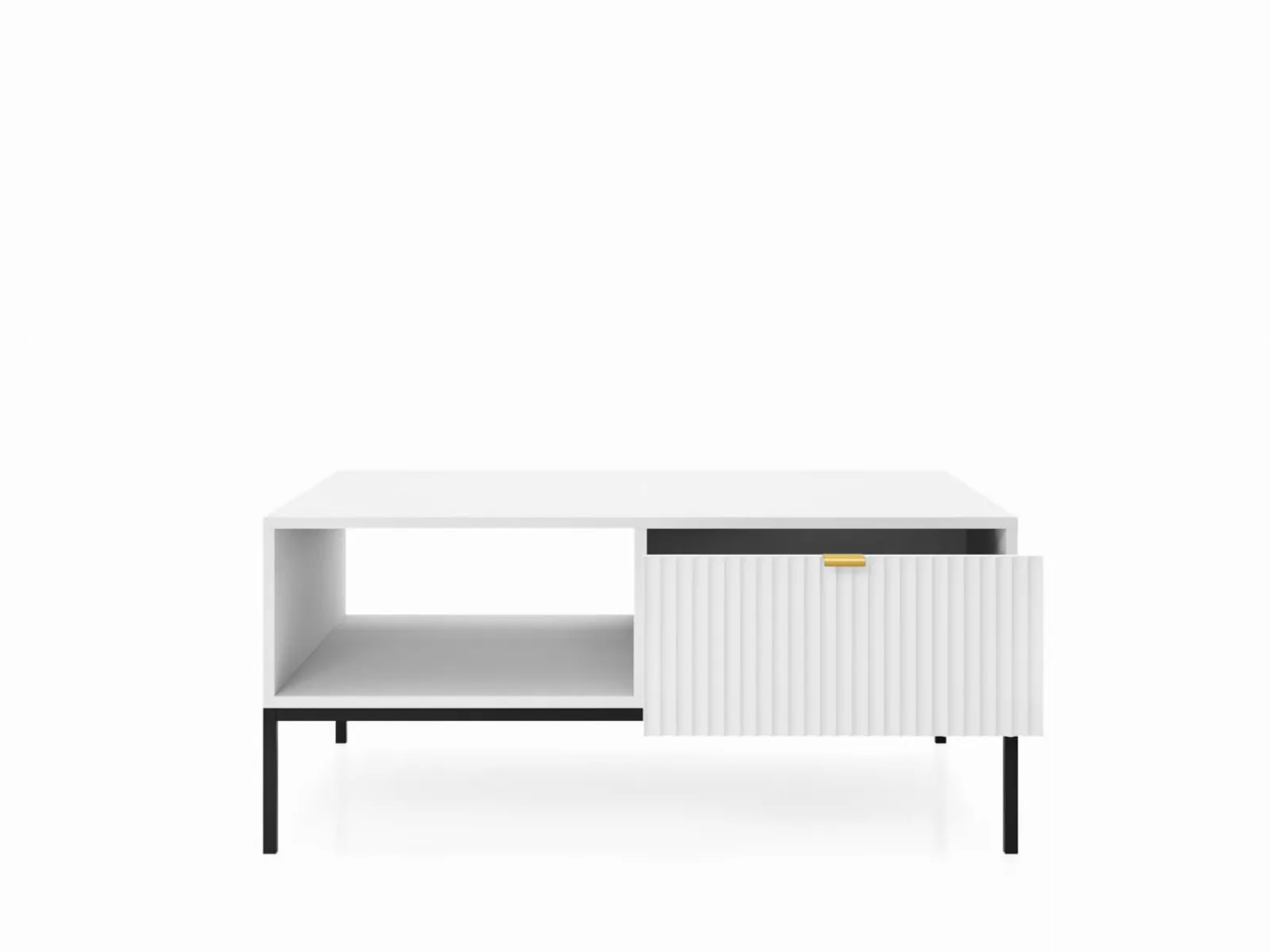 Marzysz o eleganckim i praktycznym meblu, który idealnie wpasuje się w Twoje wnętrze? Ława Bari z jedną szufladą to doskonały wybór dla osób ceniących nowoczesny design i wysoką jakość wykonania. Minimalistyczna forma, frezowane fronty oraz subtelne, złote uchwyty tworzą harmonijną kompozycję, która zachwyca subtelnością i klasą.
