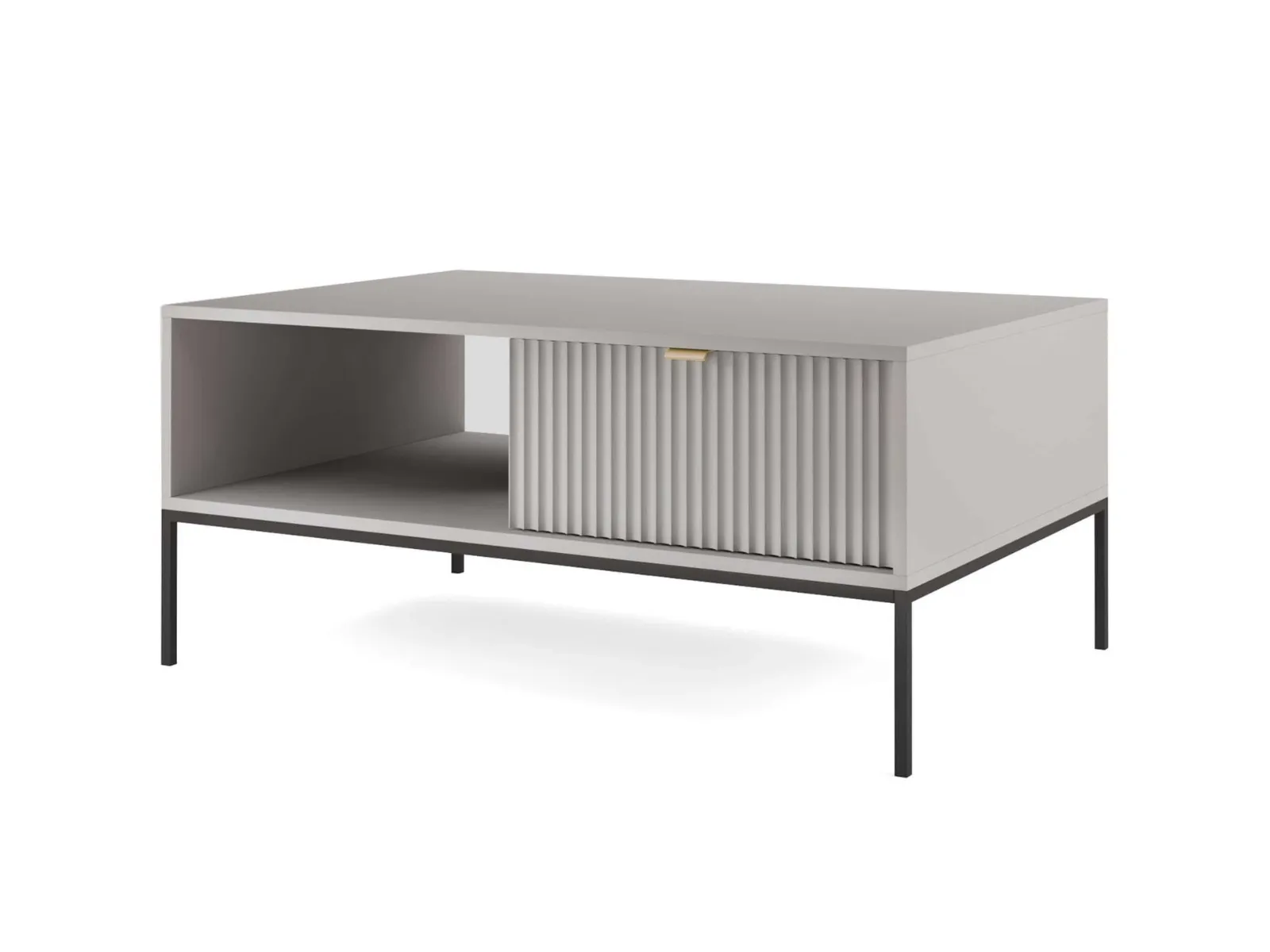 Marzysz o eleganckim i praktycznym meblu, który idealnie wpasuje się w Twoje wnętrze? Ława Bari z jedną szufladą to doskonały wybór dla osób ceniących nowoczesny design i wysoką jakość wykonania. Minimalistyczna forma, frezowane fronty oraz subtelne, złote uchwyty tworzą harmonijną kompozycję, która zachwyca subtelnością i klasą.