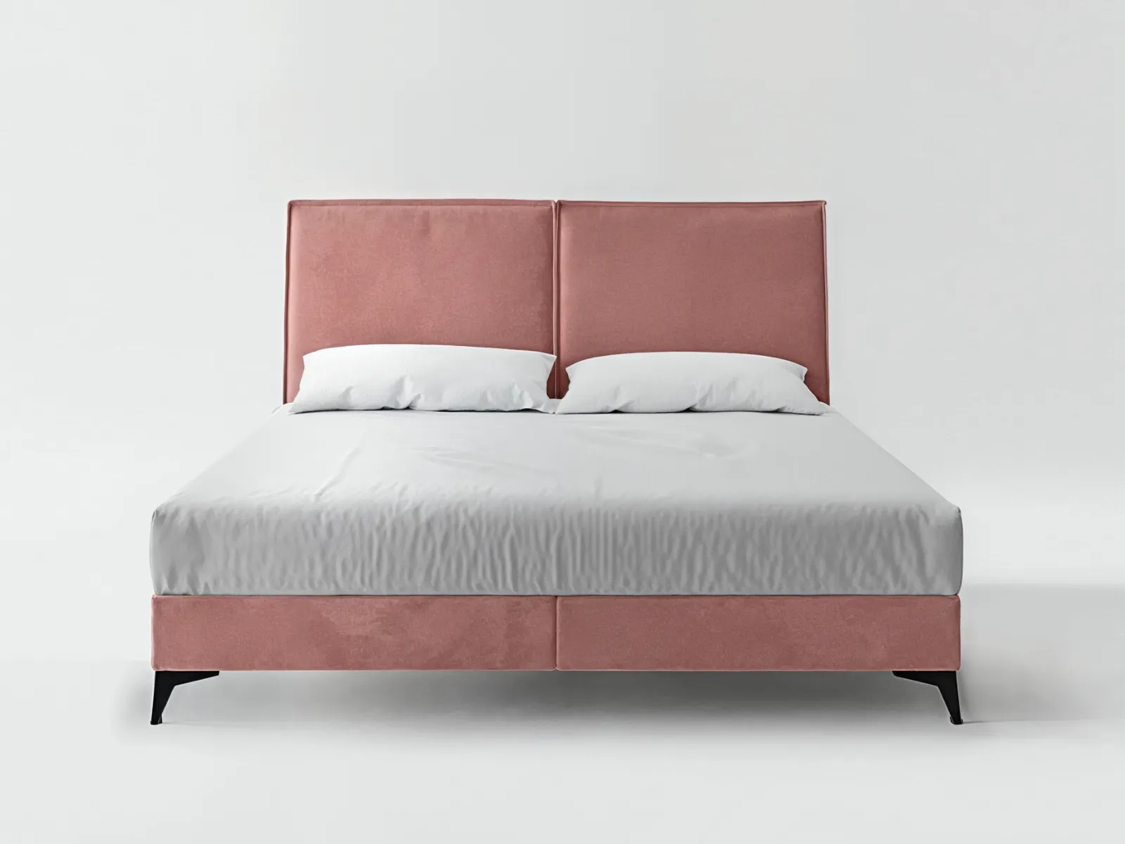 Łóżko kontynentalne CLATOS to idealny wybór do sypialni w stylu glamour, nowoczesnym i klasycznym. Różowa kolorystyka w połączeniu z geometrycznym zagłówkiem i metalowymi detalami sprawia, że wnętrze nabiera charakteru i przytulnej elegancji.