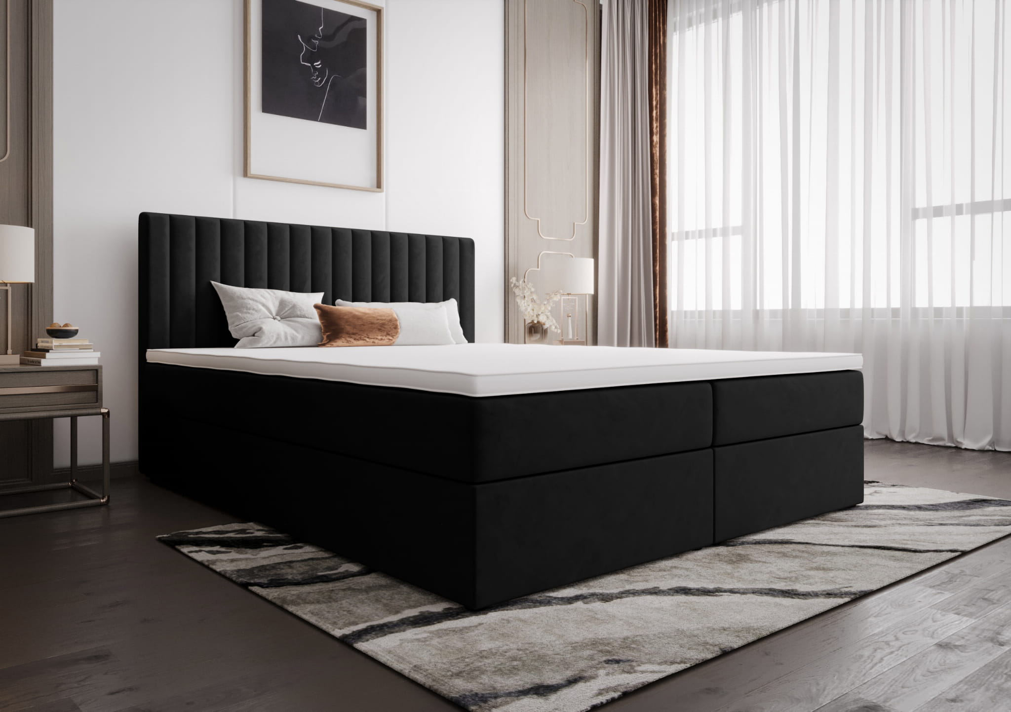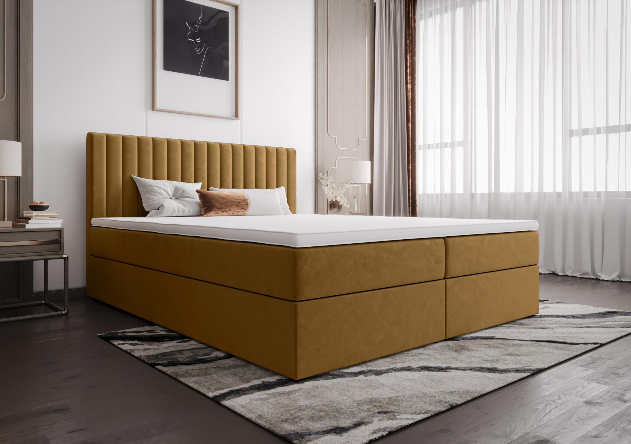 Łóżko kontynentalne Kimi to elegancki i funkcjonalny wybór do każdej sypialni. Jego wyróżnikiem jest stylowe zagłowie zdobione pionowymi przeszyciami, które dodają mu nowoczesnego charakteru. Model ten posiada dwa pojemne schowki na pościel, co czyni go praktycznym rozwiązaniem do przechowywania. Wyposażone w wygodny materac bonellowy oraz dodatkowy topper, zapewnia komfortowy sen każdej nocy. Dodatkowym atutem jest darmowa dostawa, co sprawia, że zakup jest jeszcze bardziej atrakcyjny.