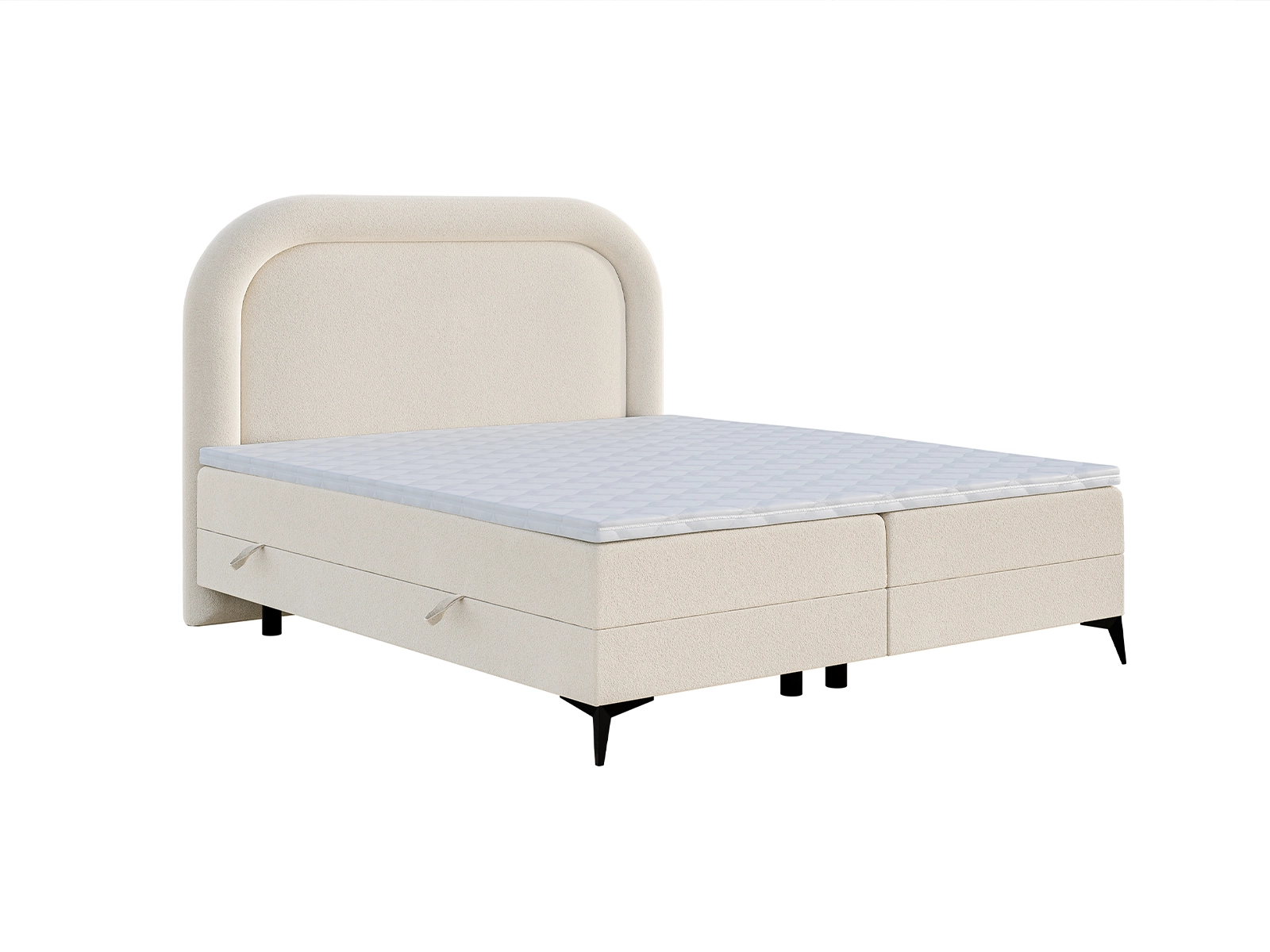 Łóżko kontynentalne 140x200 LEONIA – biała tkanina szenilowa, pojemnik, materac bonellowy i topper GRATIS