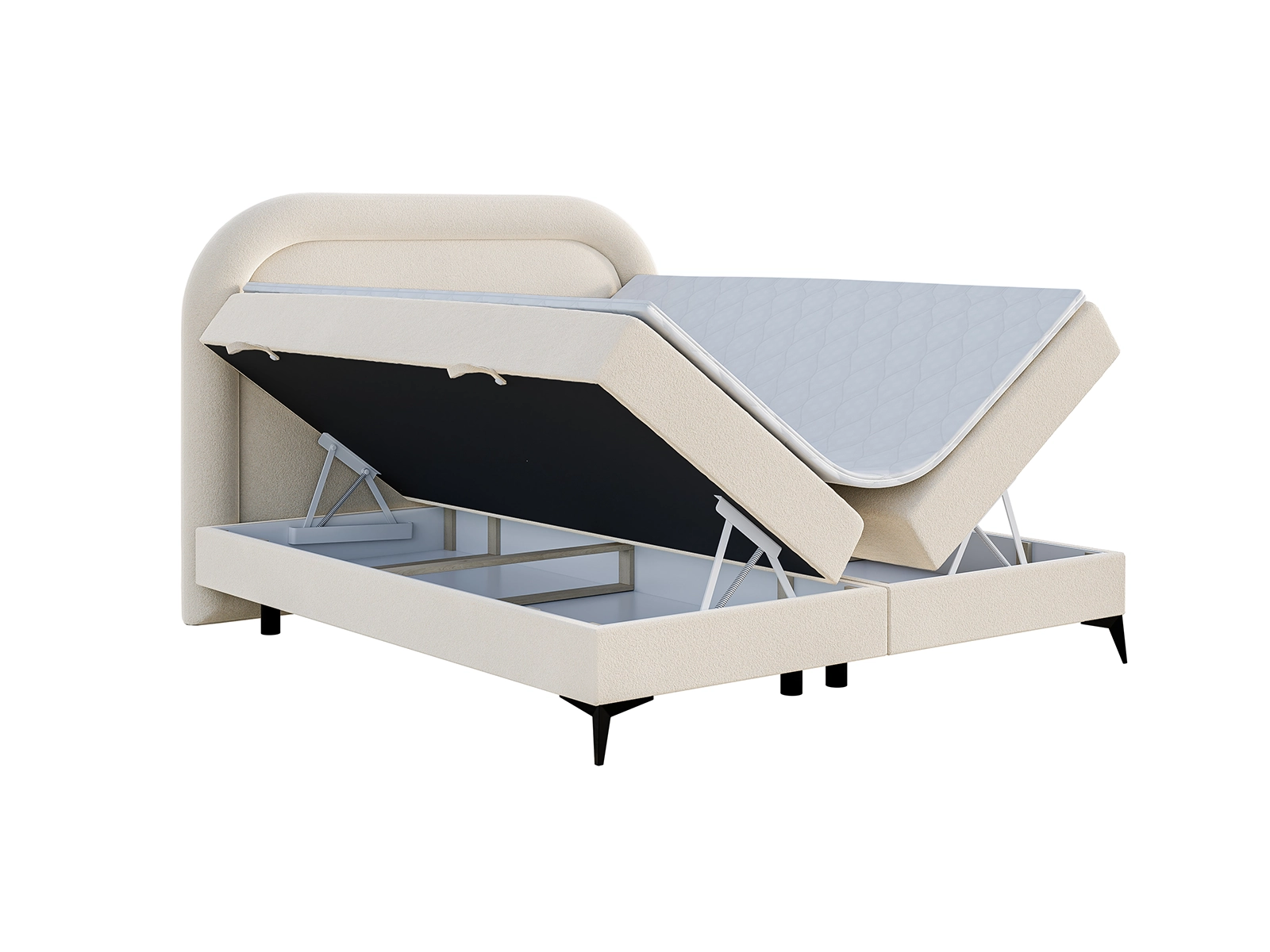 Łóżko kontynentalne 140x200 LEONIA z pojemnikiem i materacem bonellowym biały szenil