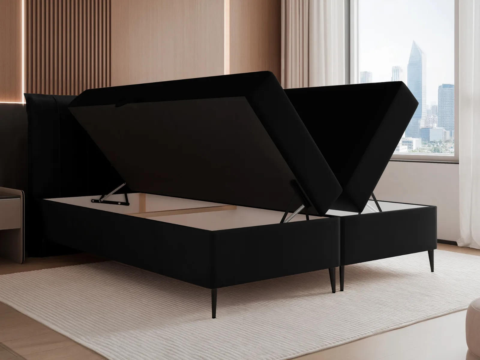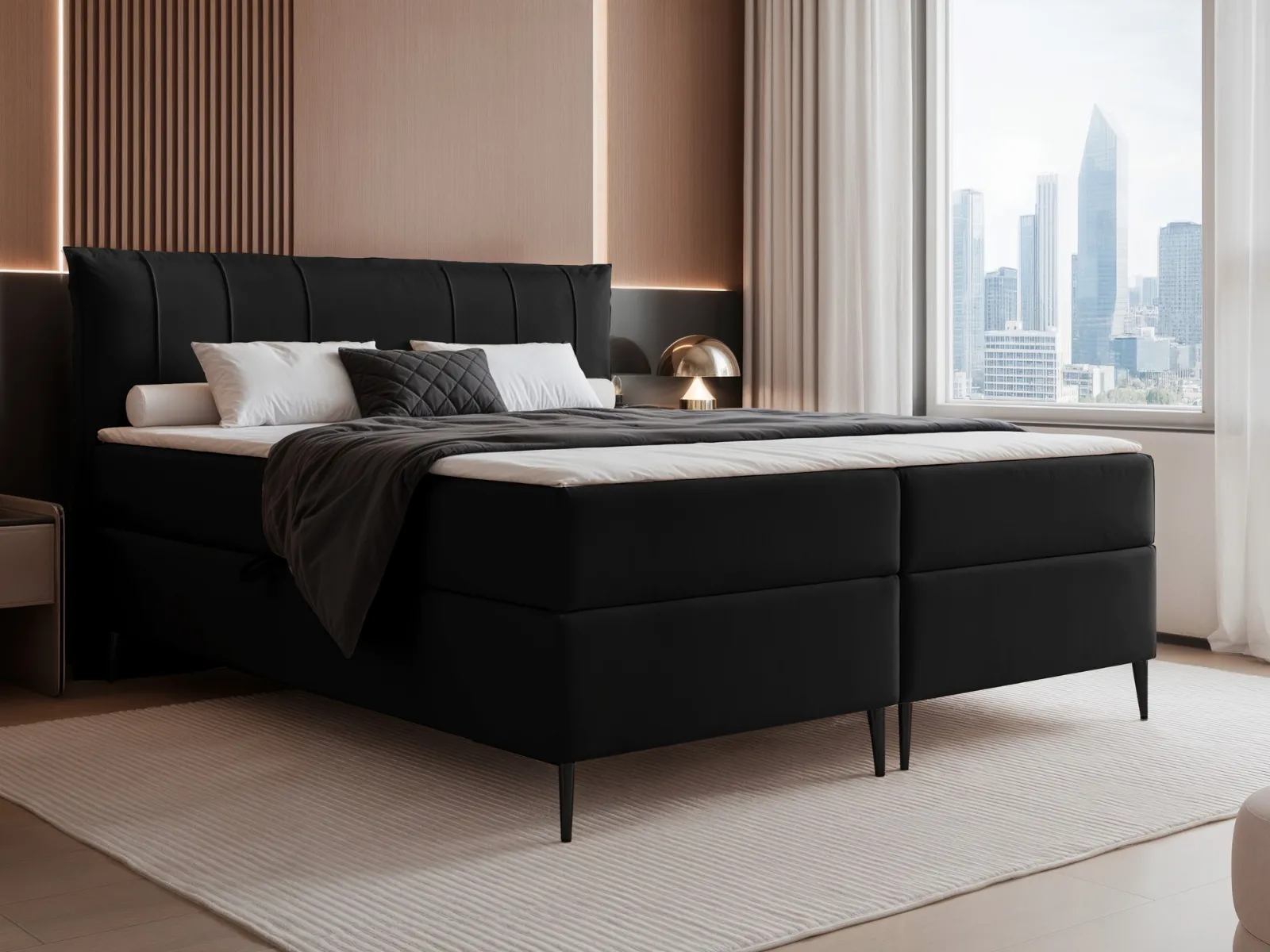 Łóżko kontynentalne 140x200 MONTARO z materacem bonellowym czarny welur