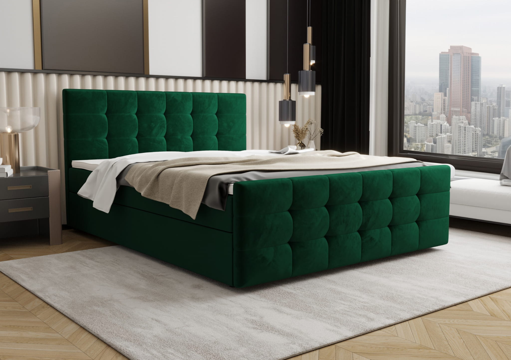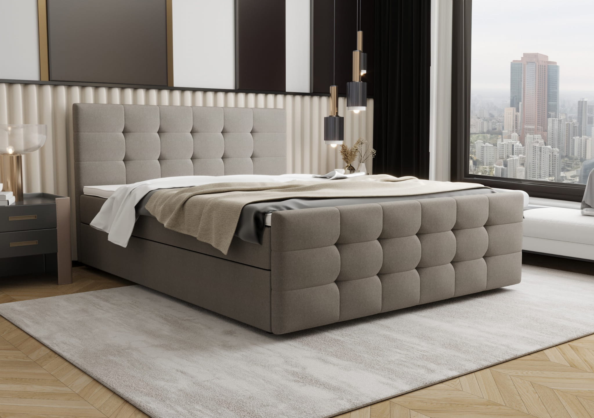 Puro to doskonałe łóżko kontynentalne, które łączy w sobie elegancję i funkcjonalność, idealnie pasując do każdej sypialni. Wyjątkowy charakter tego modelu podkreśla zagłowie oraz przodek z efektownymi pikowaniami, które wprowadza nutę luksusu i nowoczesności. Łóżko zostało wyposażone w dwa przestronne pojemniki na pościel, co pozwala na wygodne przechowywanie, zapewniając ład i porządek. Dzięki zastosowaniu materaca bonellowego oraz dodatkowego toppera, Puro gwarantuje wyjątkowy komfort i zdrowy sen każdej nocy. A co najlepsze, oferujemy darmową dostawę, co sprawia, że wybór tego łóżka staje się jeszcze bardziej opłacalny.