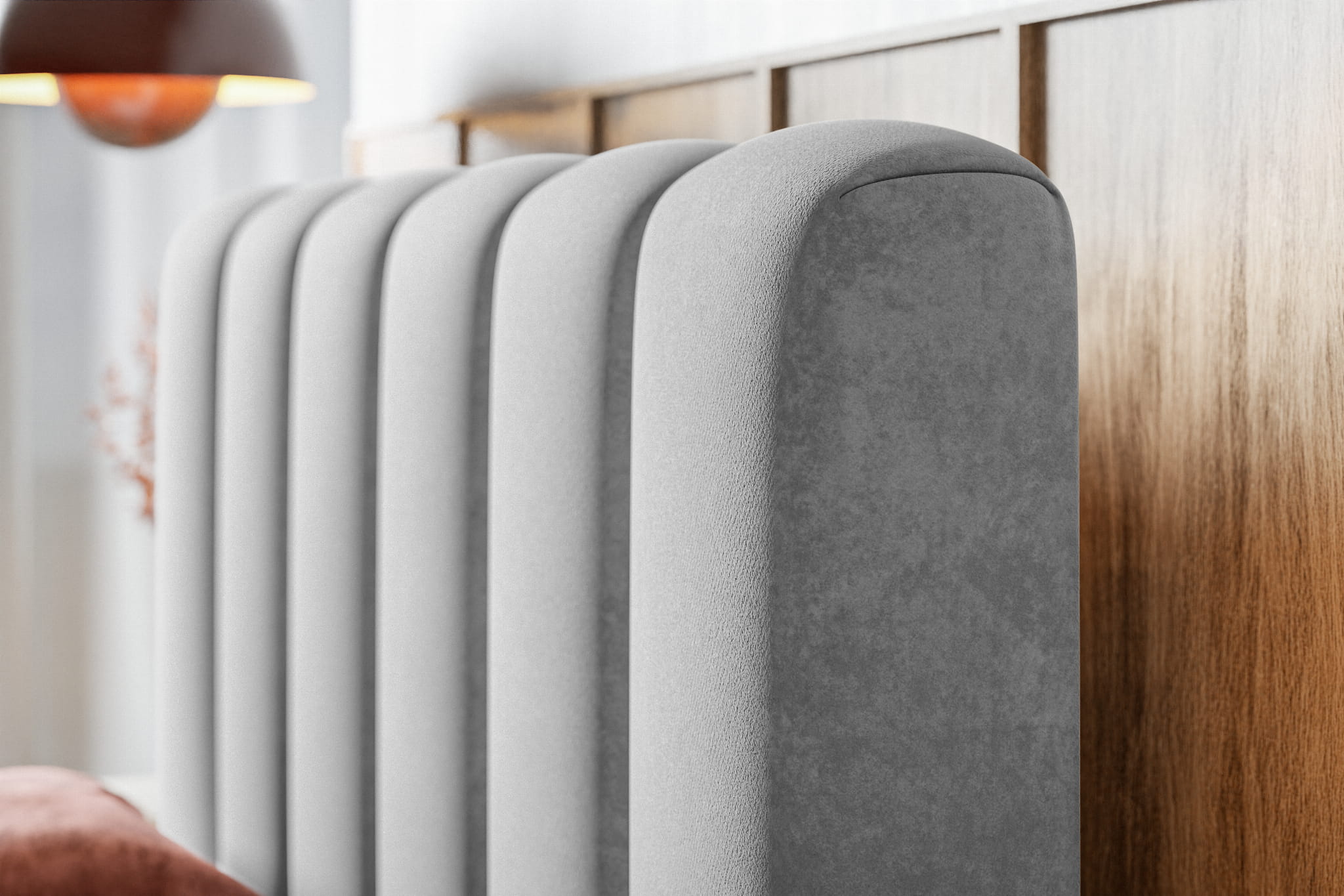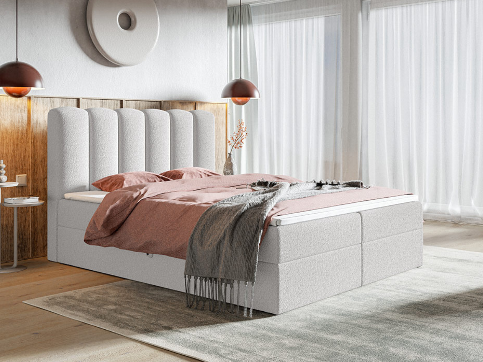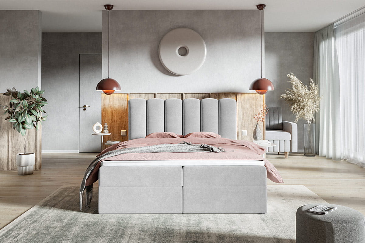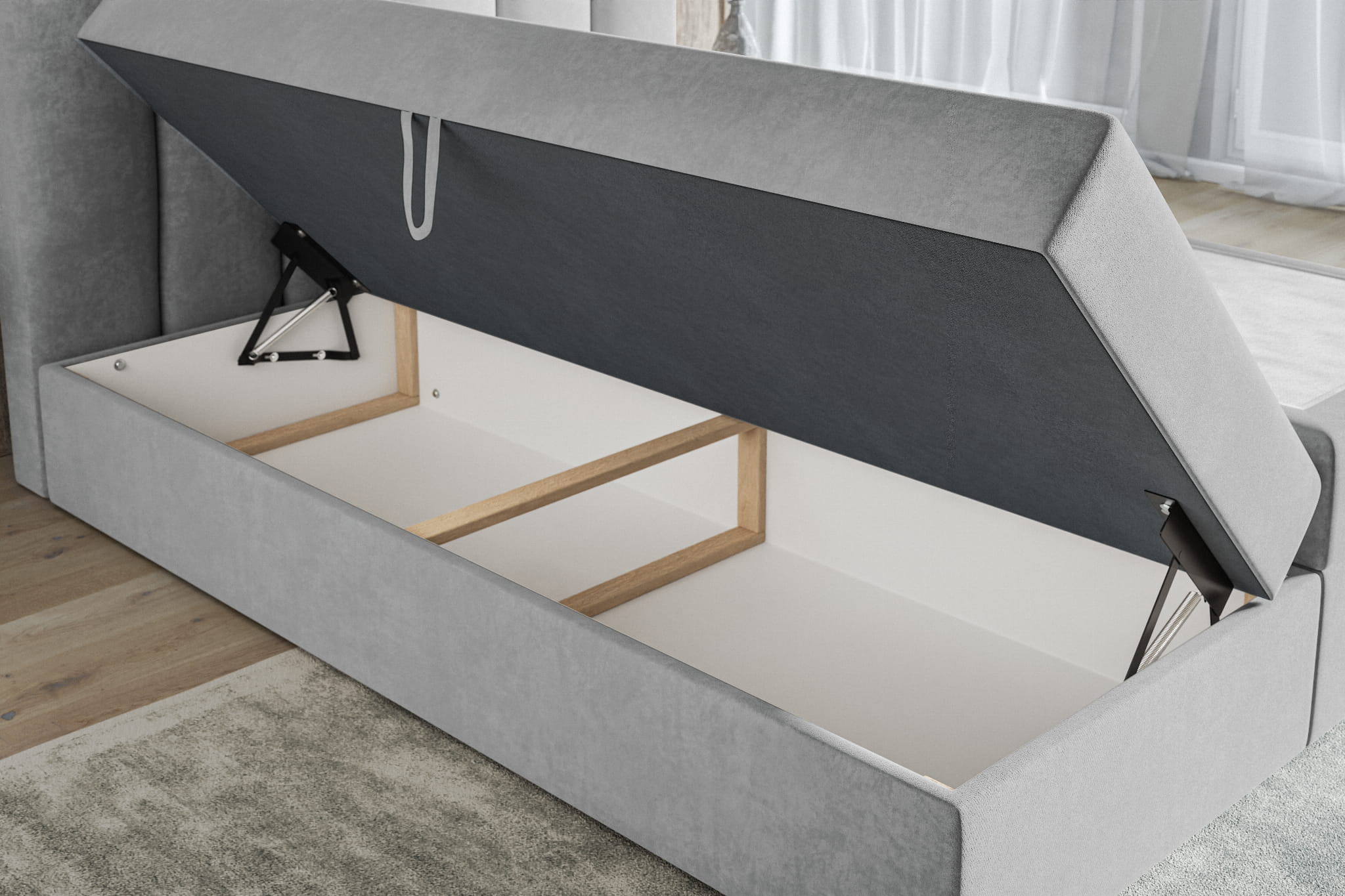Łóżko kontynentalne 160x200 AMOR z pojemnikiem oraz materacem bonellowym szary welur