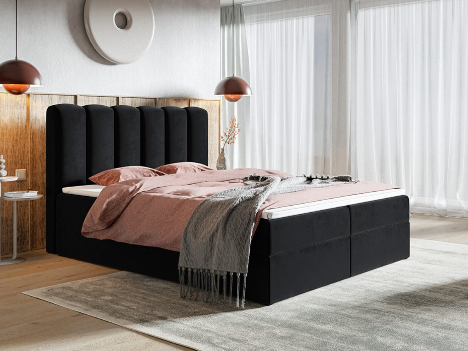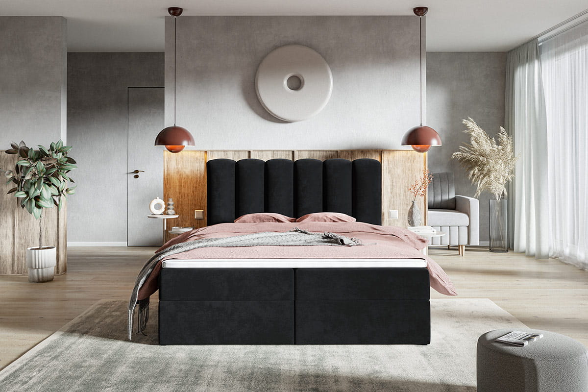 Łóżko kontynentalne Amor to połączenie komfortu, funkcjonalności i nowoczesnego designu, idealne dla osób poszukujących stylowego rozwiązania do sypialni. Wyposażone w dwa przestronne pojemniki na pościel, łóżko Amor zapewnia praktyczne miejsce do przechowywania kołder, poduszek i innych akcesoriów, pomagając utrzymać porządek w sypialni.