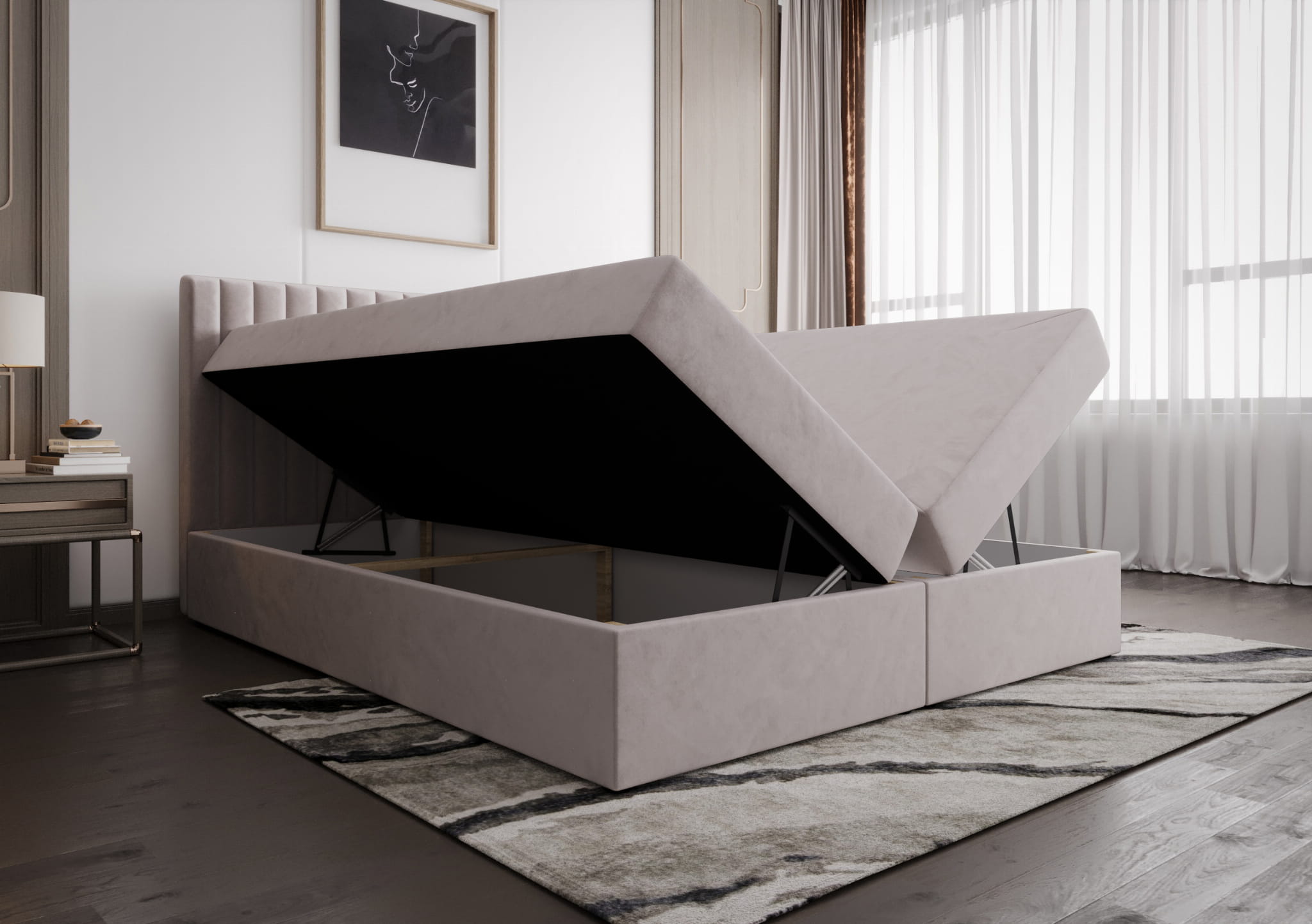 - Wymiary pod materac: 160×200 cm