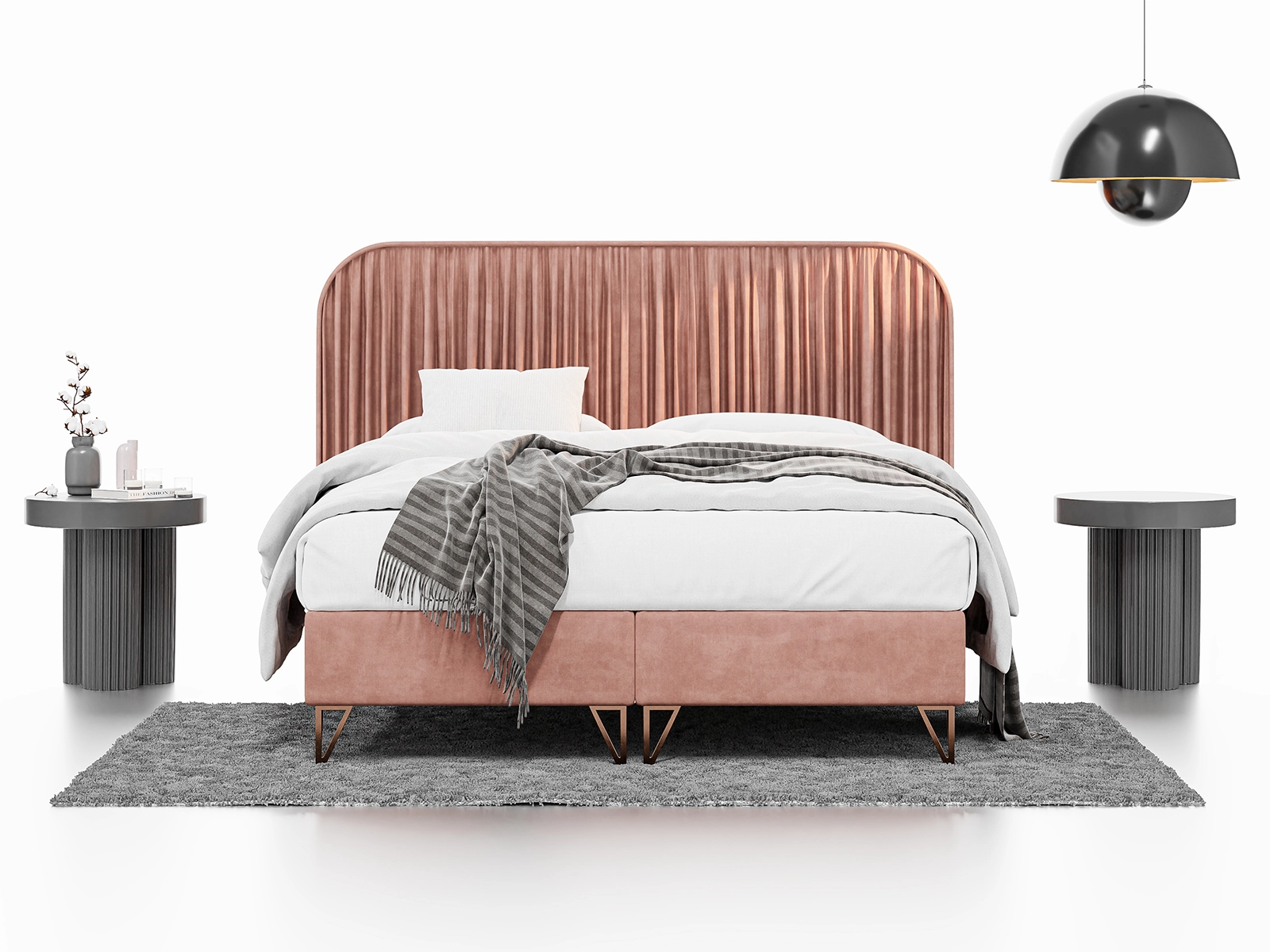 Łóżko kontynentalne LUMIA 160x200 to połączenie elegancji, wygody i nowoczesnego stylu, które doskonale dopełni każdą stylowo urządzoną sypialnię. Tapicerowane w modnej, różowej tkaninie welurowej, z subtelnym zaokrąglonym zagłówkiem i dekoracyjną lamówką, tworzy przytulną i jednocześnie wyrafinowaną przestrzeń do odpoczynku.