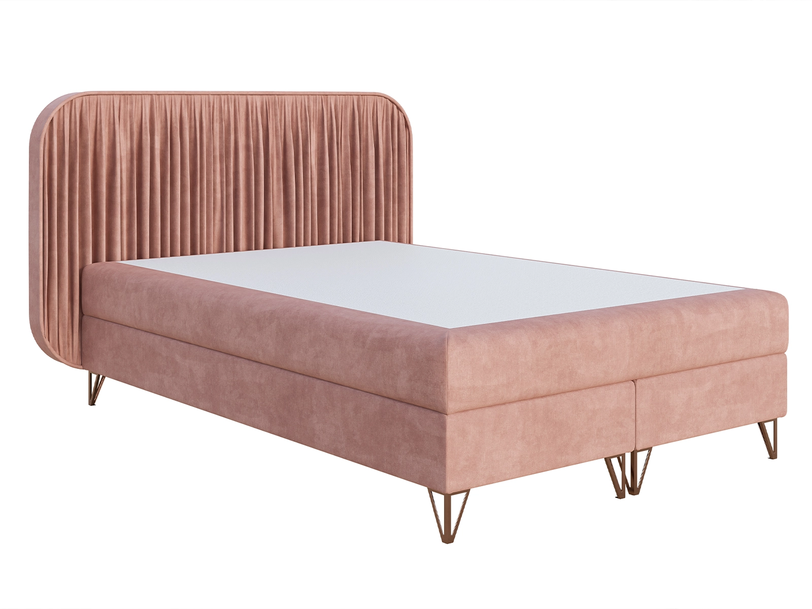 Łóżko kontynentalne 160x200 LUMIA z materacem bonellowym różowe welurowe