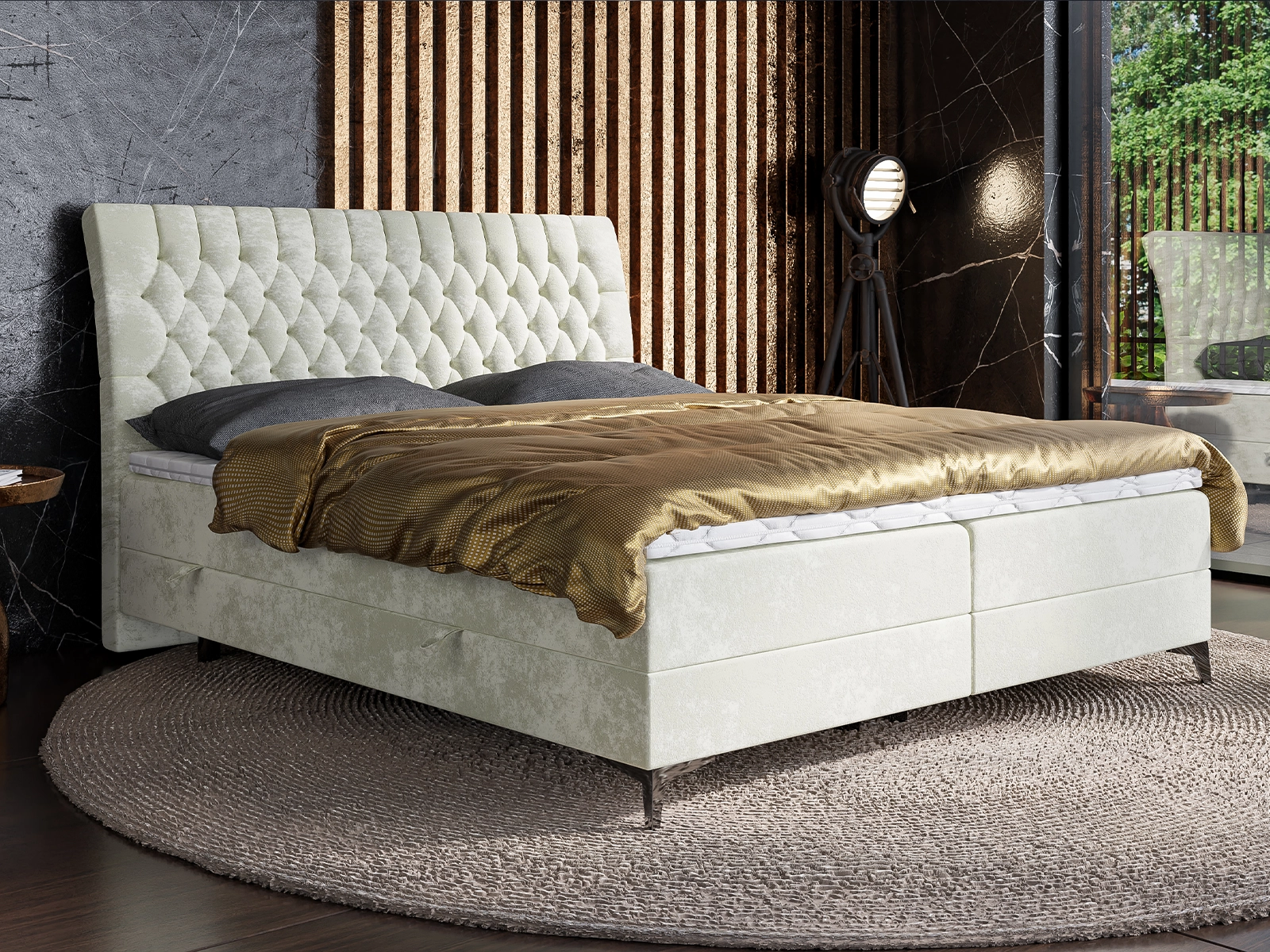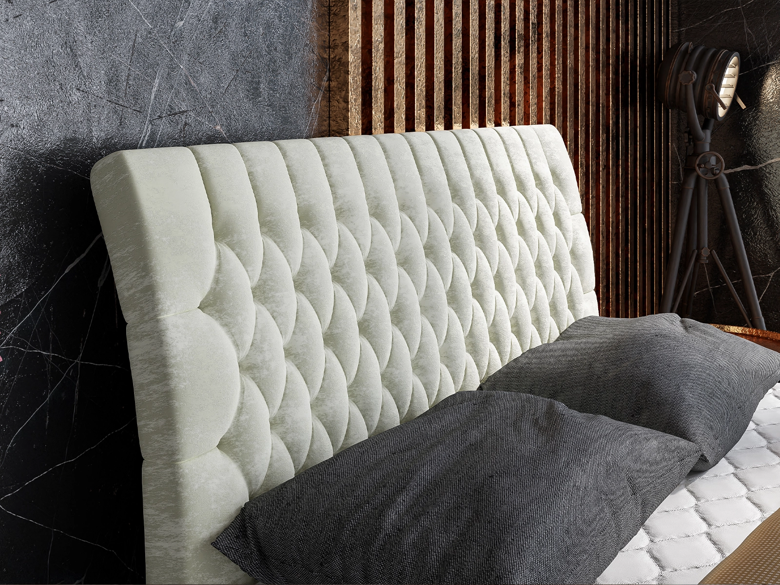 Łóżko Medison wyróżnia się pięknym zagłówkiem z pikowaniami i detalami, które dodają mu elegancji i klasy. Subtelne nogi dopełniają całości, nadając meblowi lekkości i nowoczesnego wyglądu. To idealne łóżko dla osób poszukujących praktycznego i stylowego rozwiązania do swojej sypialni. Dzięki starannemu wykonaniu i użyciu wysokiej jakości materiałów, łóżko Medison zapewnia komfort i trwałość na lata.