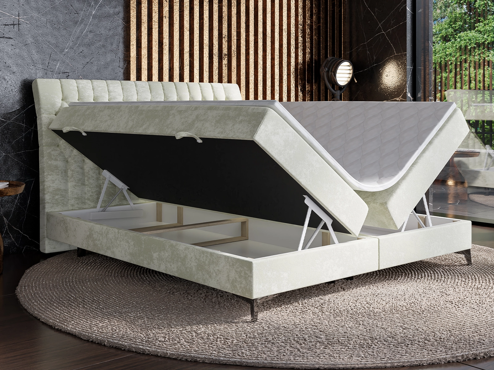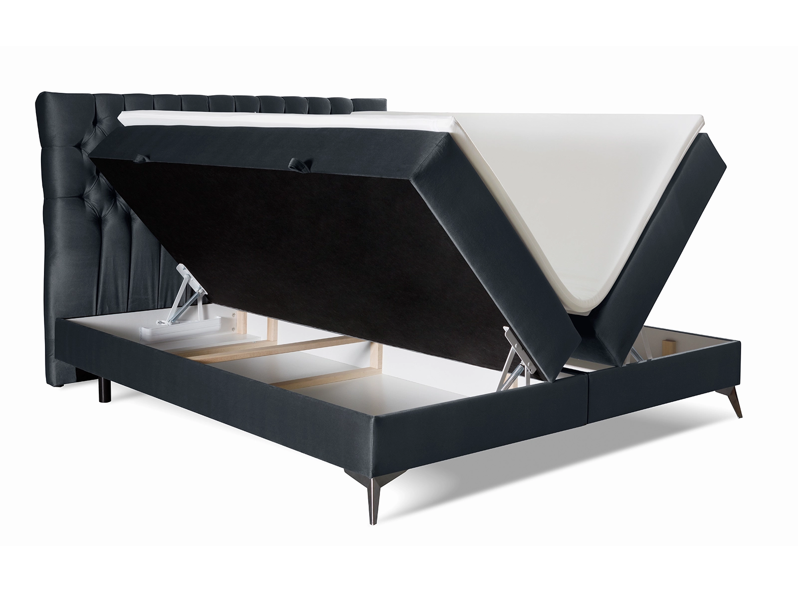 Łóżko kontynentalne 160x200 MEDISON z pojemnikiem oraz materacem bonellowym szare welurowe