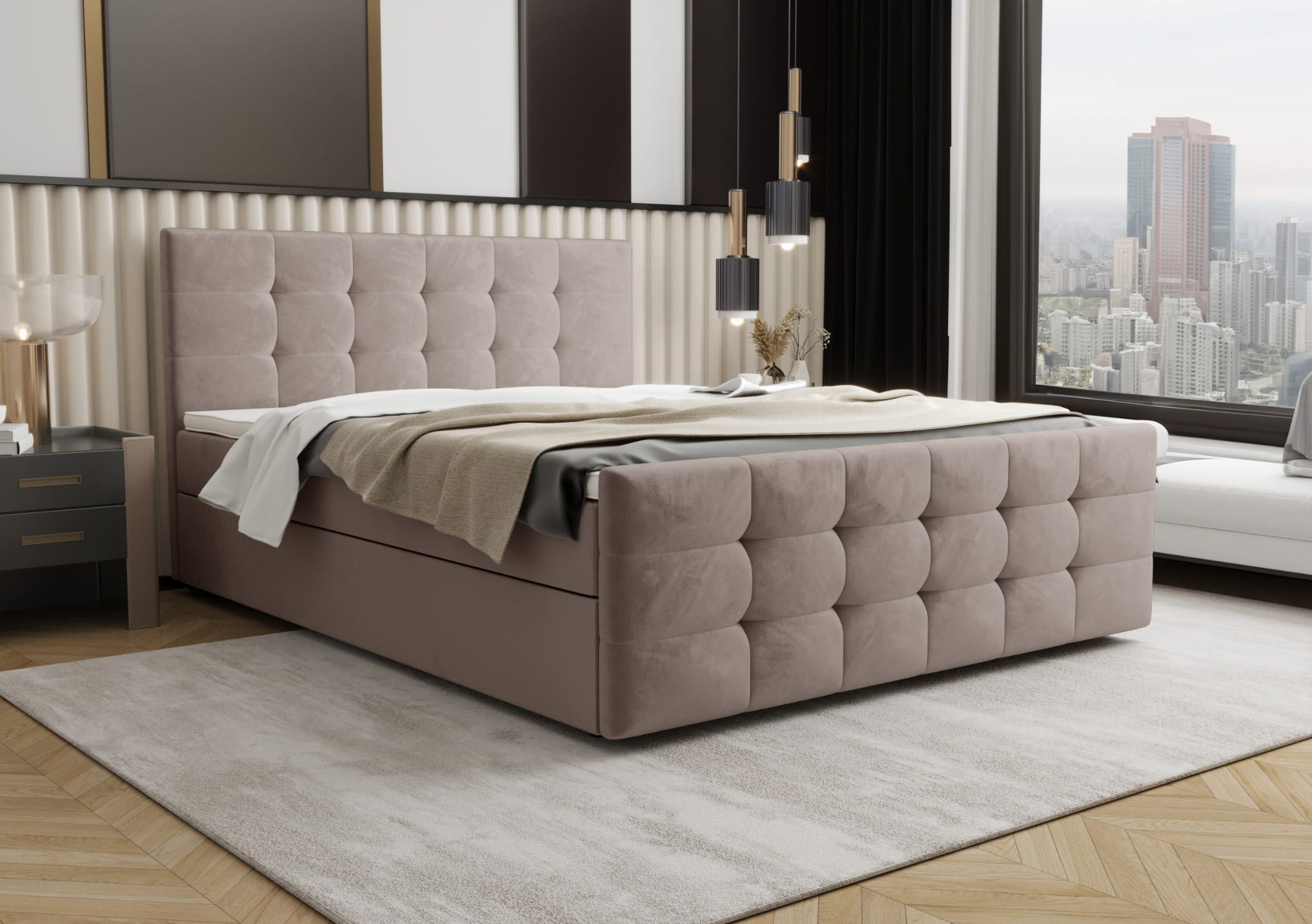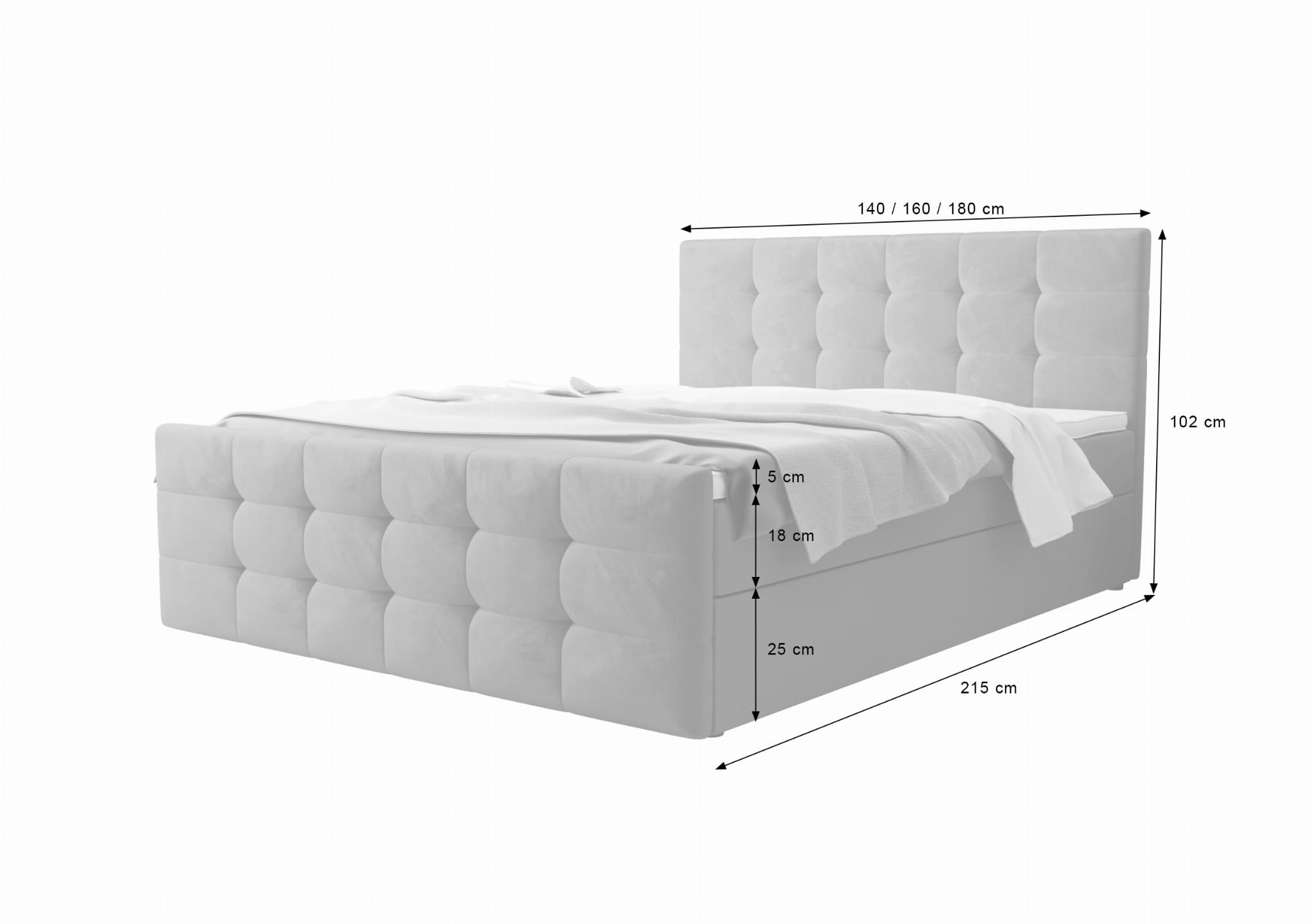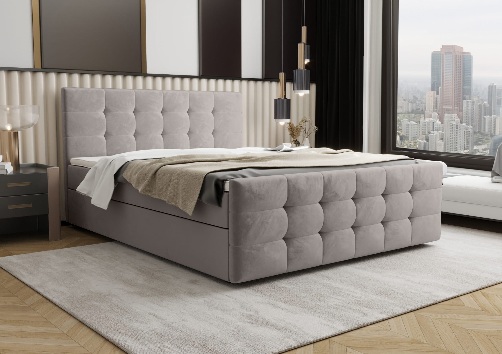 Łóżko kontynentalne 160x200 PURO beżowe z pojemnikiem oraz materacem bonellowym