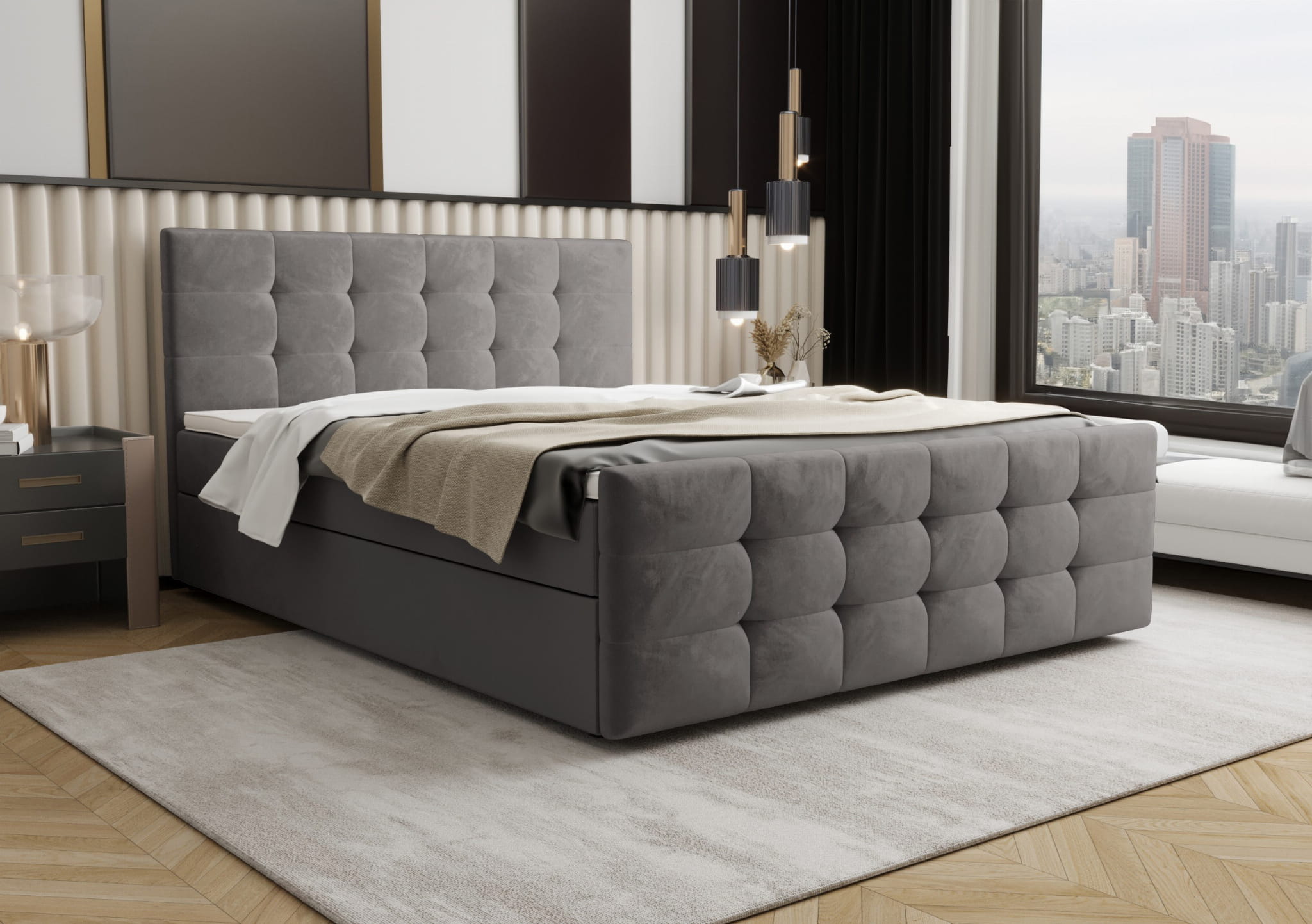 Puro to doskonałe łóżko kontynentalne, które łączy w sobie elegancję i funkcjonalność, idealnie pasując do każdej sypialni. Wyjątkowy charakter tego modelu podkreśla zagłowie oraz przodek z efektownymi pikowaniami, które wprowadza nutę luksusu i nowoczesności. Łóżko zostało wyposażone w dwa przestronne pojemniki na pościel, co pozwala na wygodne przechowywanie, zapewniając ład i porządek. Dzięki zastosowaniu materaca bonellowego oraz dodatkowego toppera, Puro gwarantuje wyjątkowy komfort i zdrowy sen każdej nocy. A co najlepsze, oferujemy darmową dostawę, co sprawia, że wybór tego łóżka staje się jeszcze bardziej opłacalny.