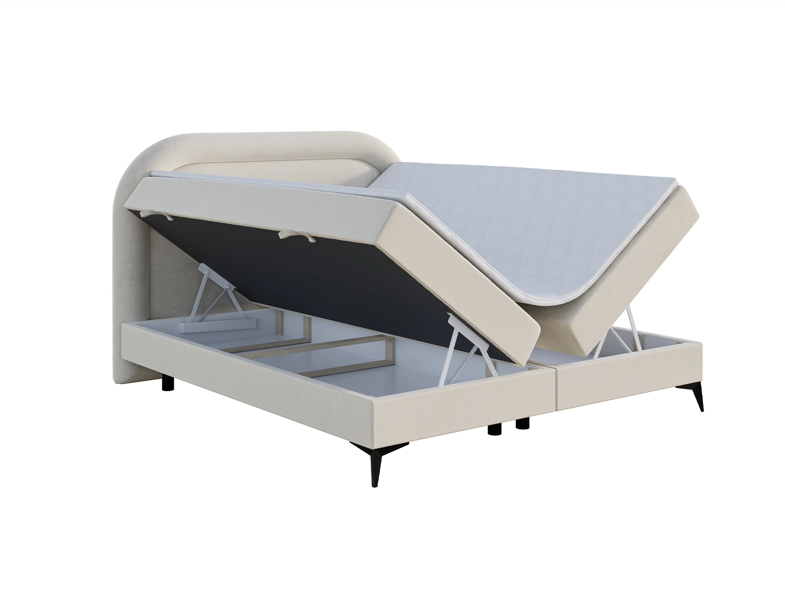 Łóżko kontynentalne 180x200 LEONIA – biała tkanina szenilowa, pojemnik, materac bonellowy i topper GRATIS
