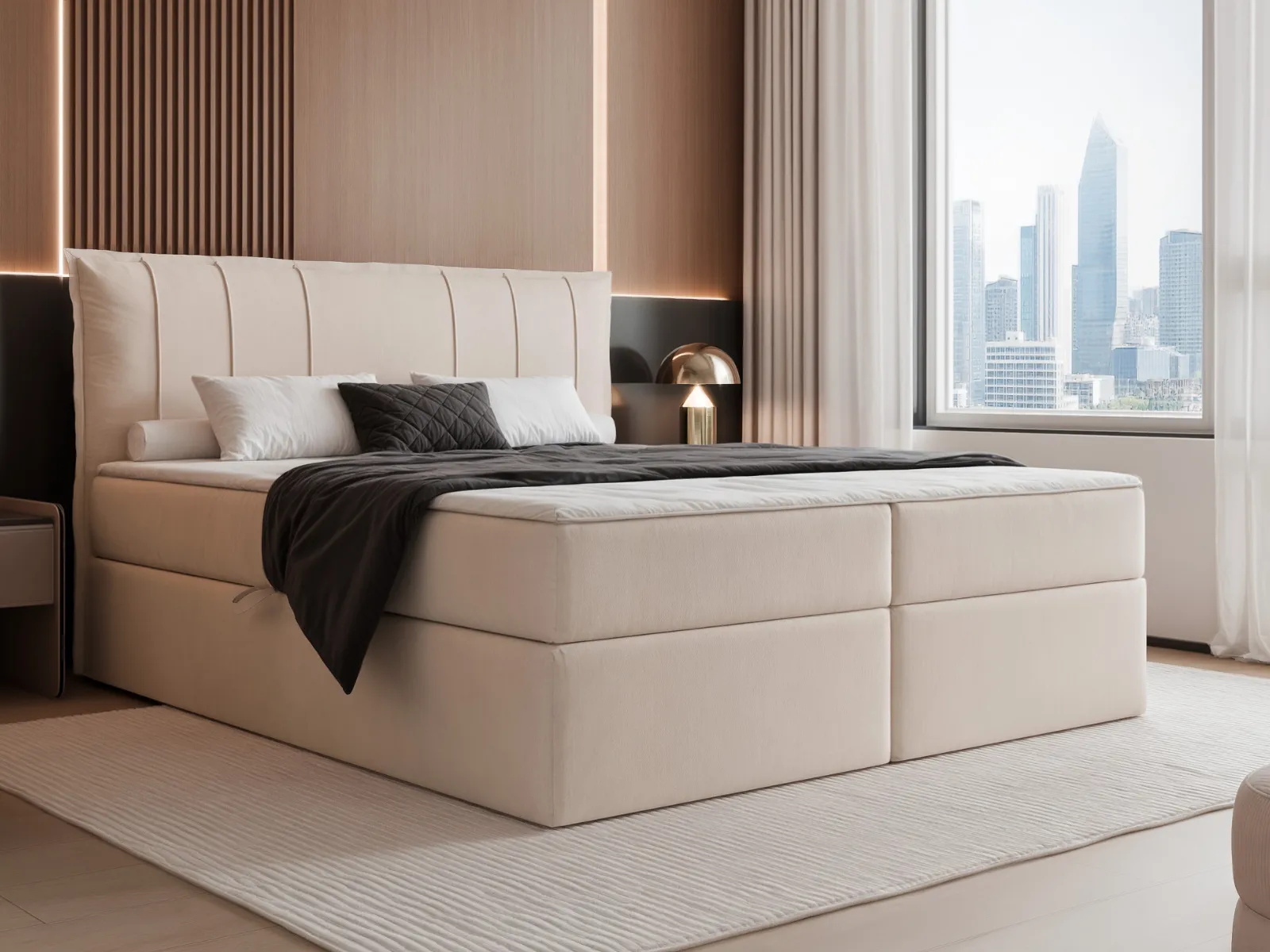 Łóżko kontynentalne Ravena to połączenie luksusowego designu, nowoczesnej formy i wyjątkowej wygody. Wysokie, miękkie wezgłowie, dopracowana konstrukcja oraz beżowa tapicerka sprawiają, że model Ravena prezentuje się niezwykle stylowo i wprowadza do sypialni atmosferę harmonii oraz klasy premium.