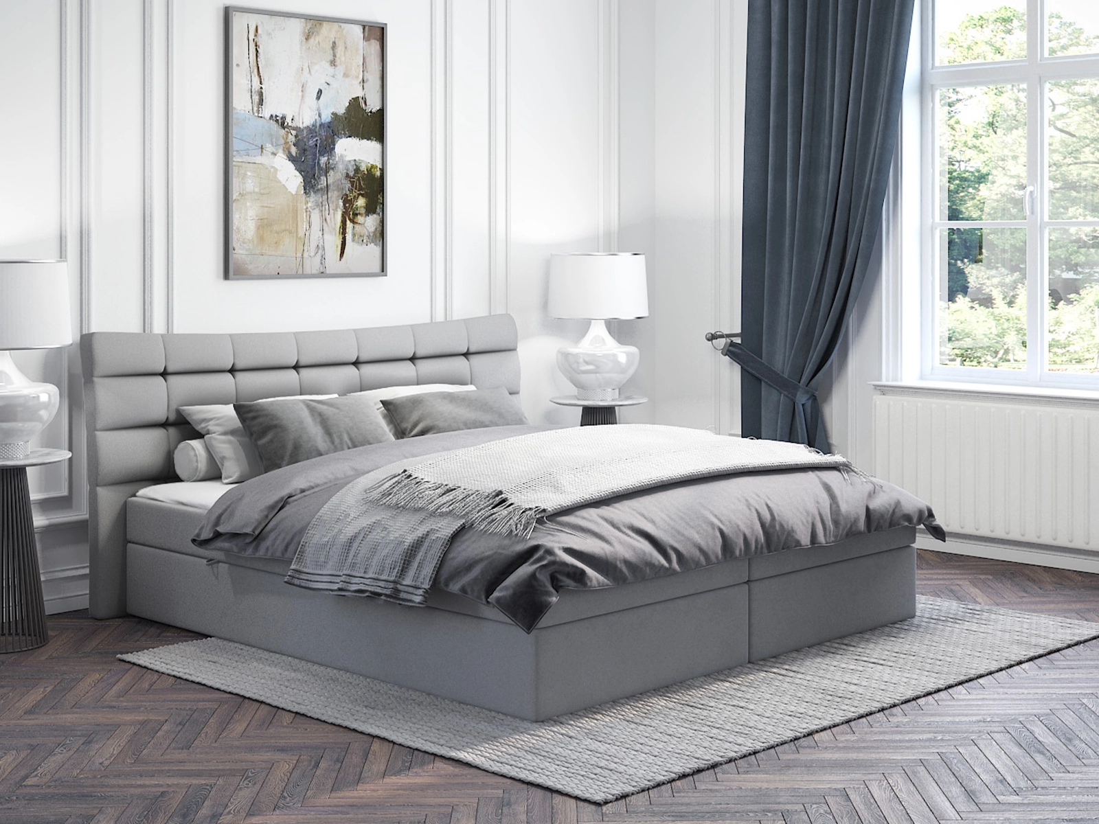 Łóżko kontynentalne 200x200 ALICE z pojemnikiem oraz materacem bonellowym szary welur