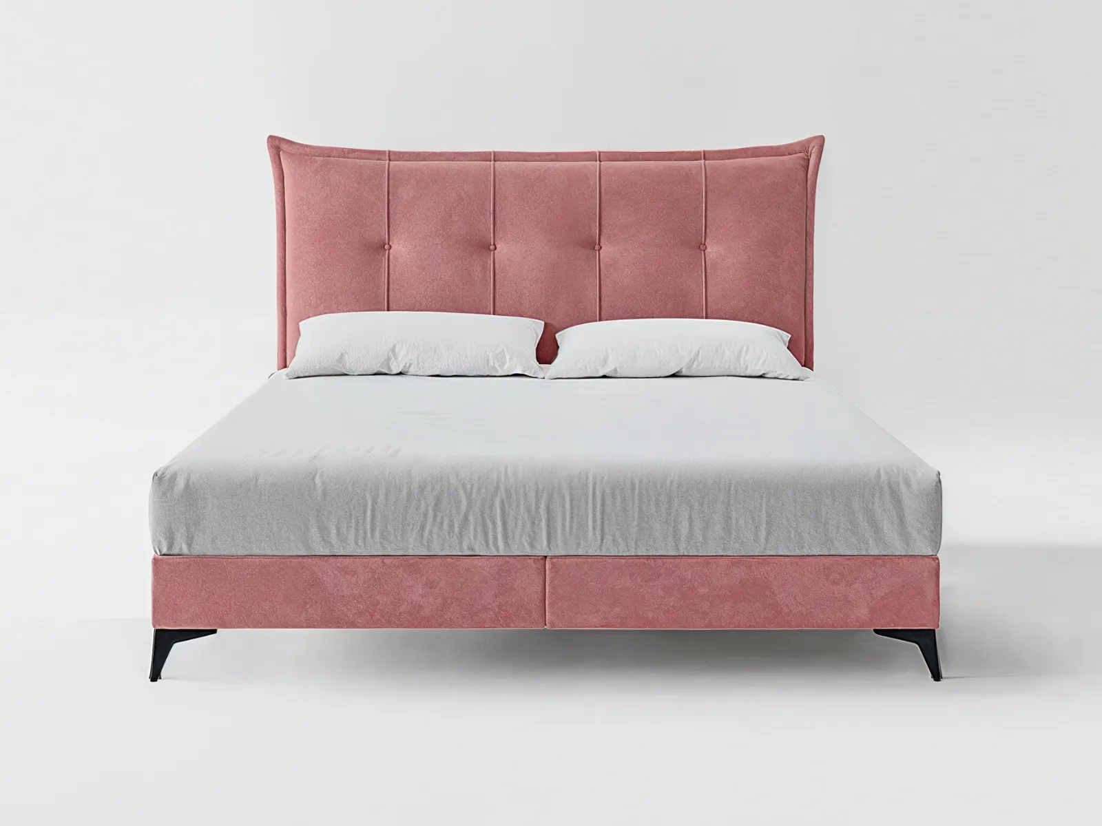 Łóżko kontynentalne 200x200 MEMOS z pojemnikiem i materacem bonellowym różowe welurowe