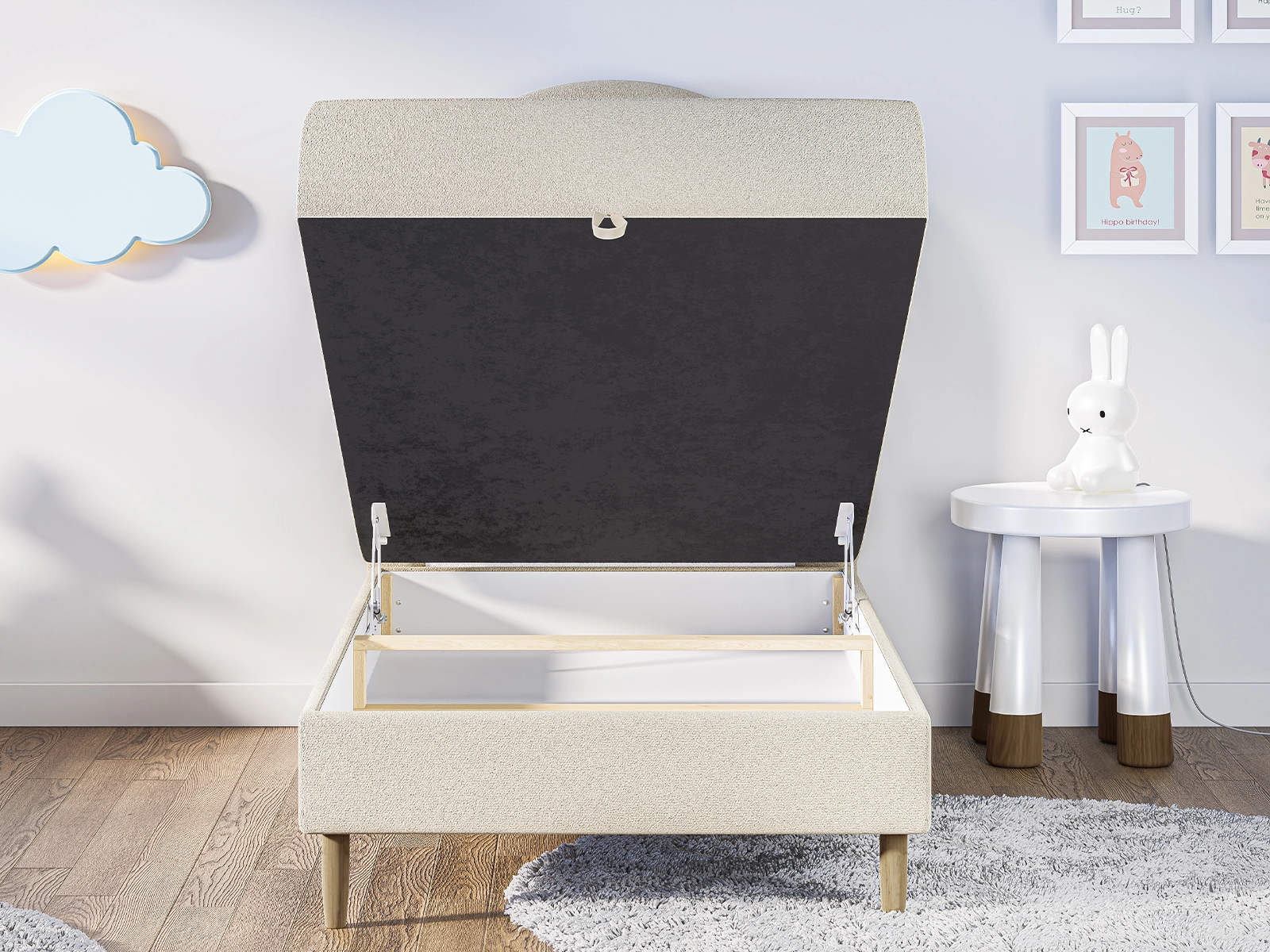 Łóżko młodzieżowe 90x160 FOXY z pojemnikiem oraz materacem bonellowym beżowe boucle