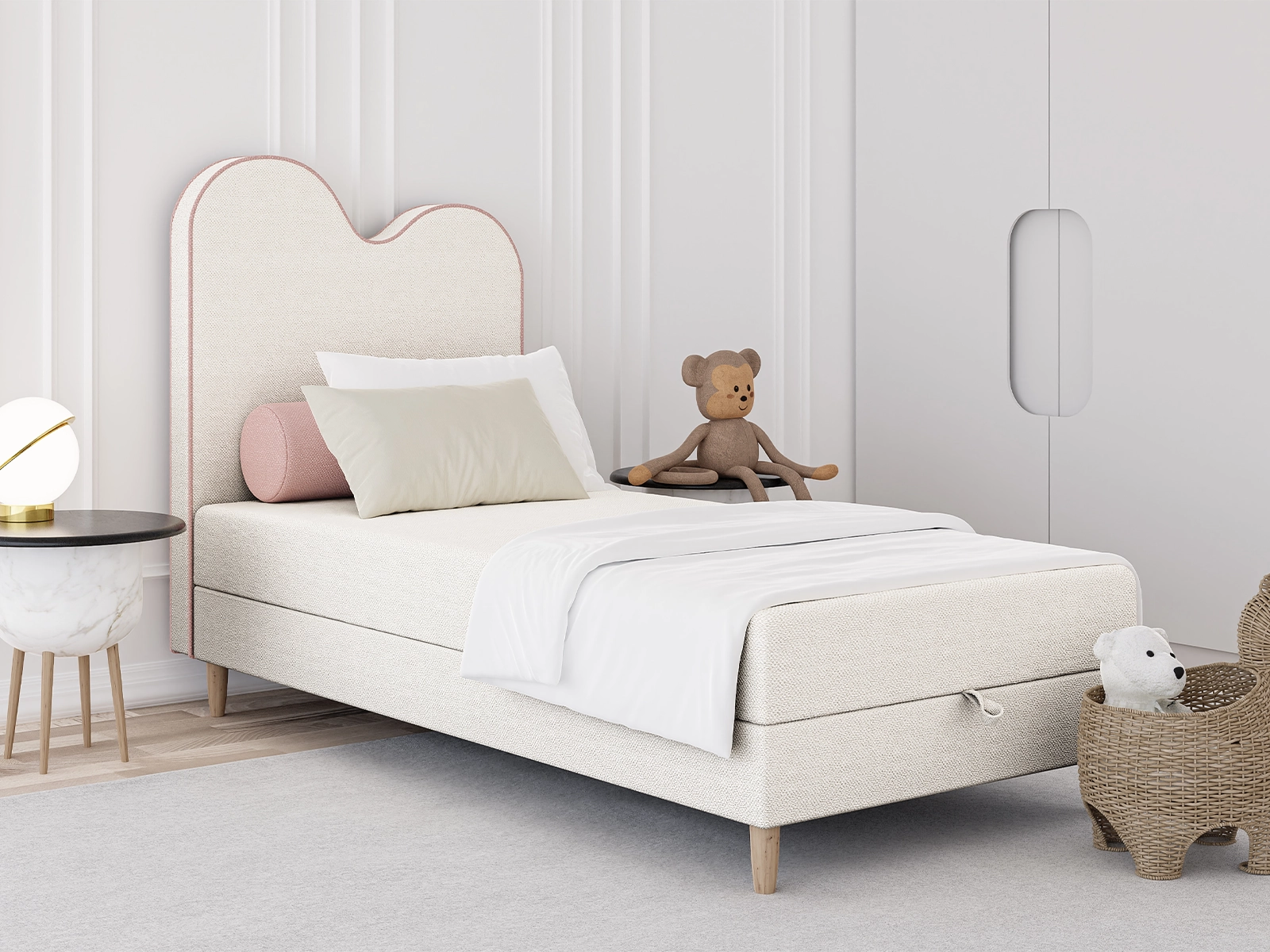 Łóżko młodzieżowe 90x160 MONTE z pojemnikiem oraz materacem bonellowym beżowe boucle