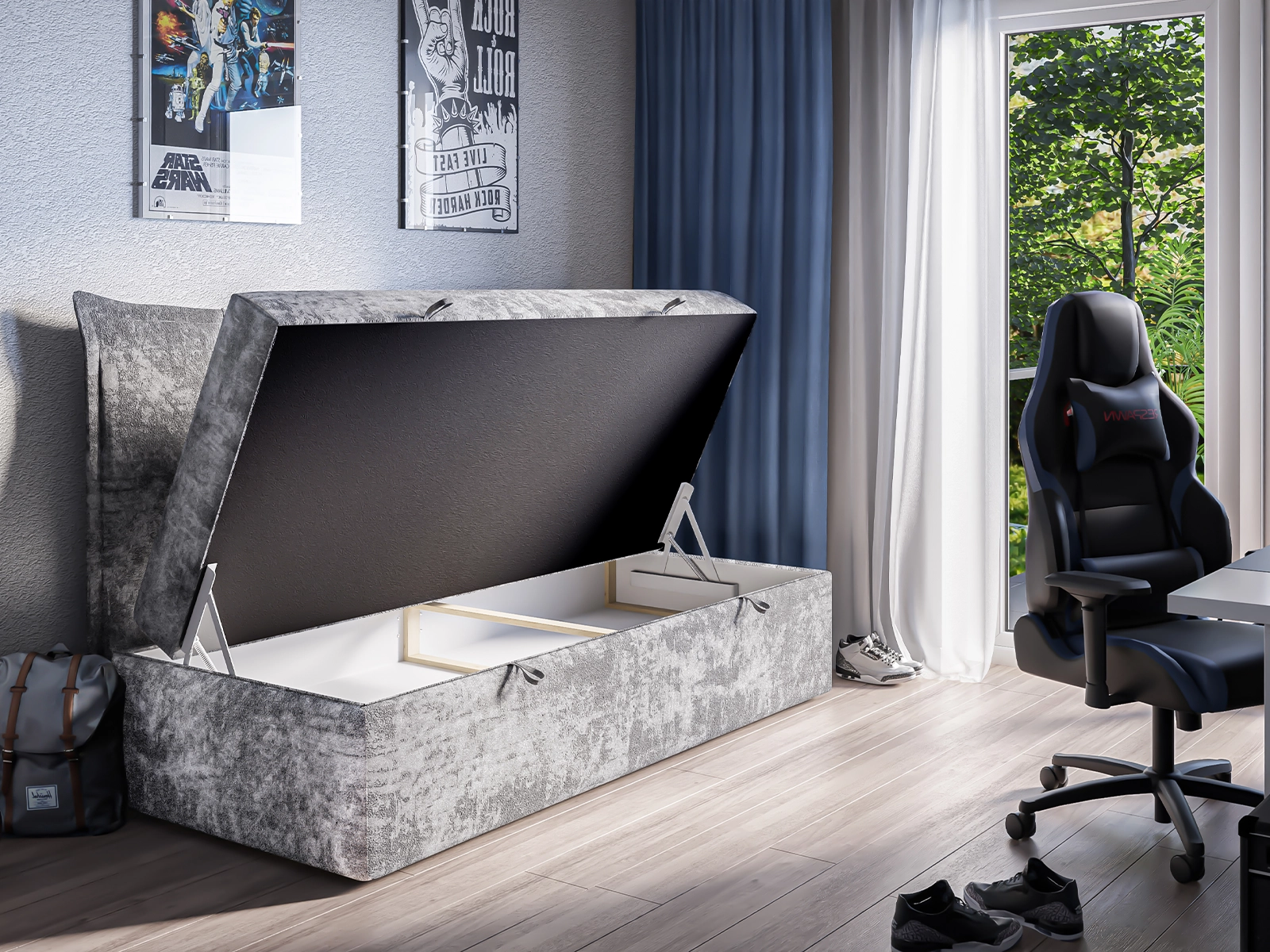 - Wymiary pod materac: 90×200 cm