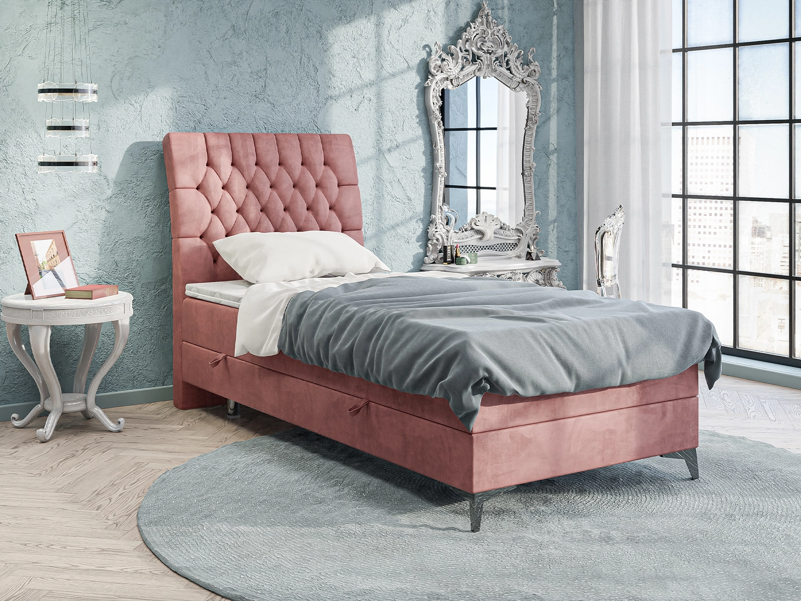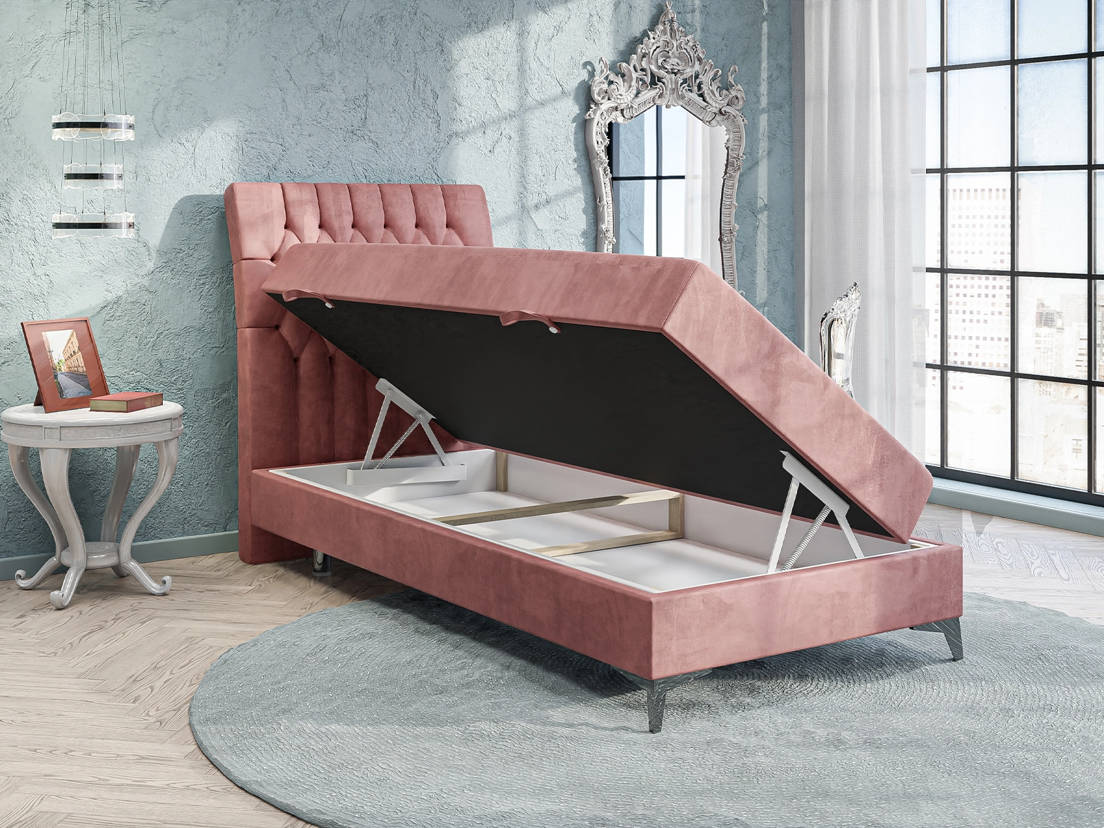 - Wymiary pod materac: 90×200 cm