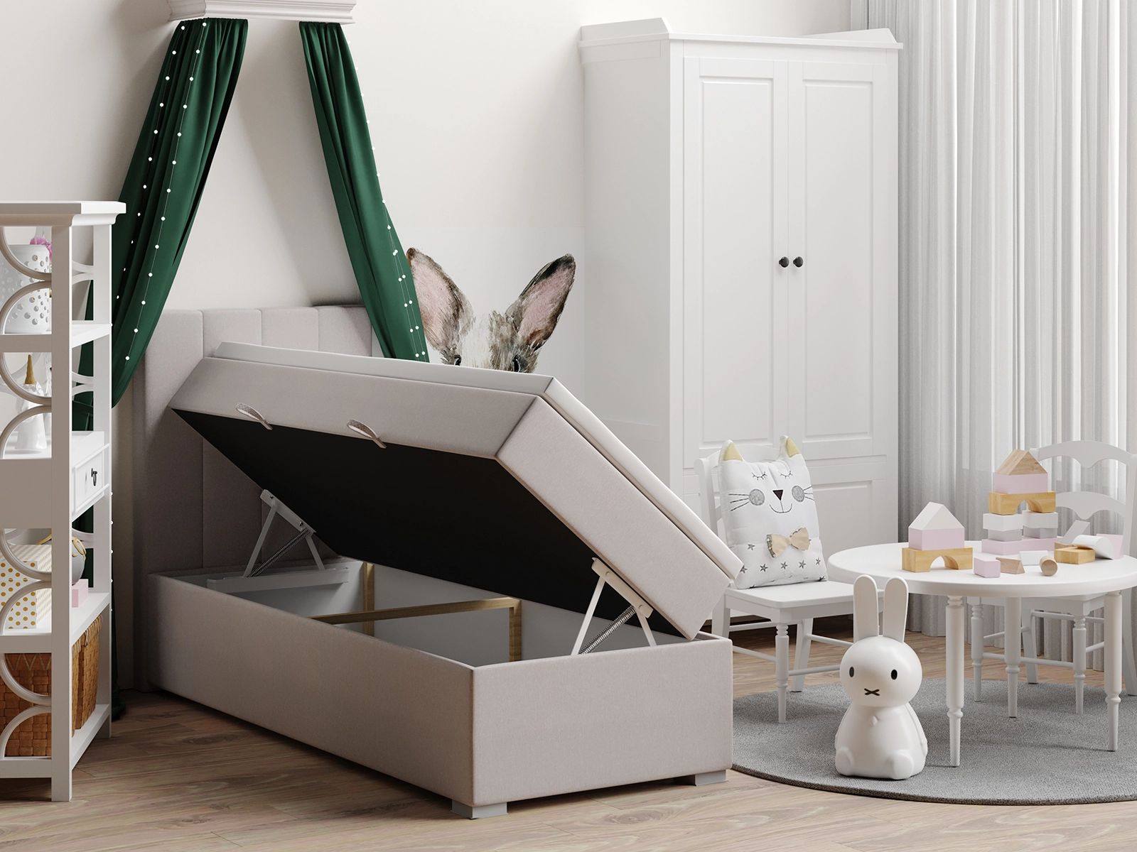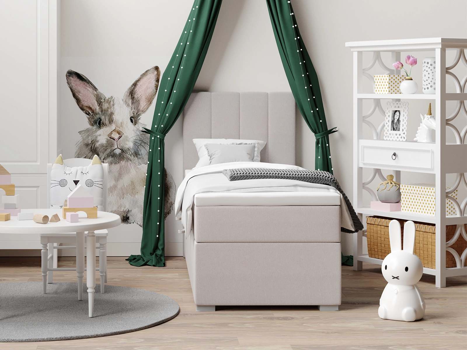 Łóżko młodzieżowe 90x200 LYDIA z pojemnikiem oraz materacem bonellowym beżowe welurowe