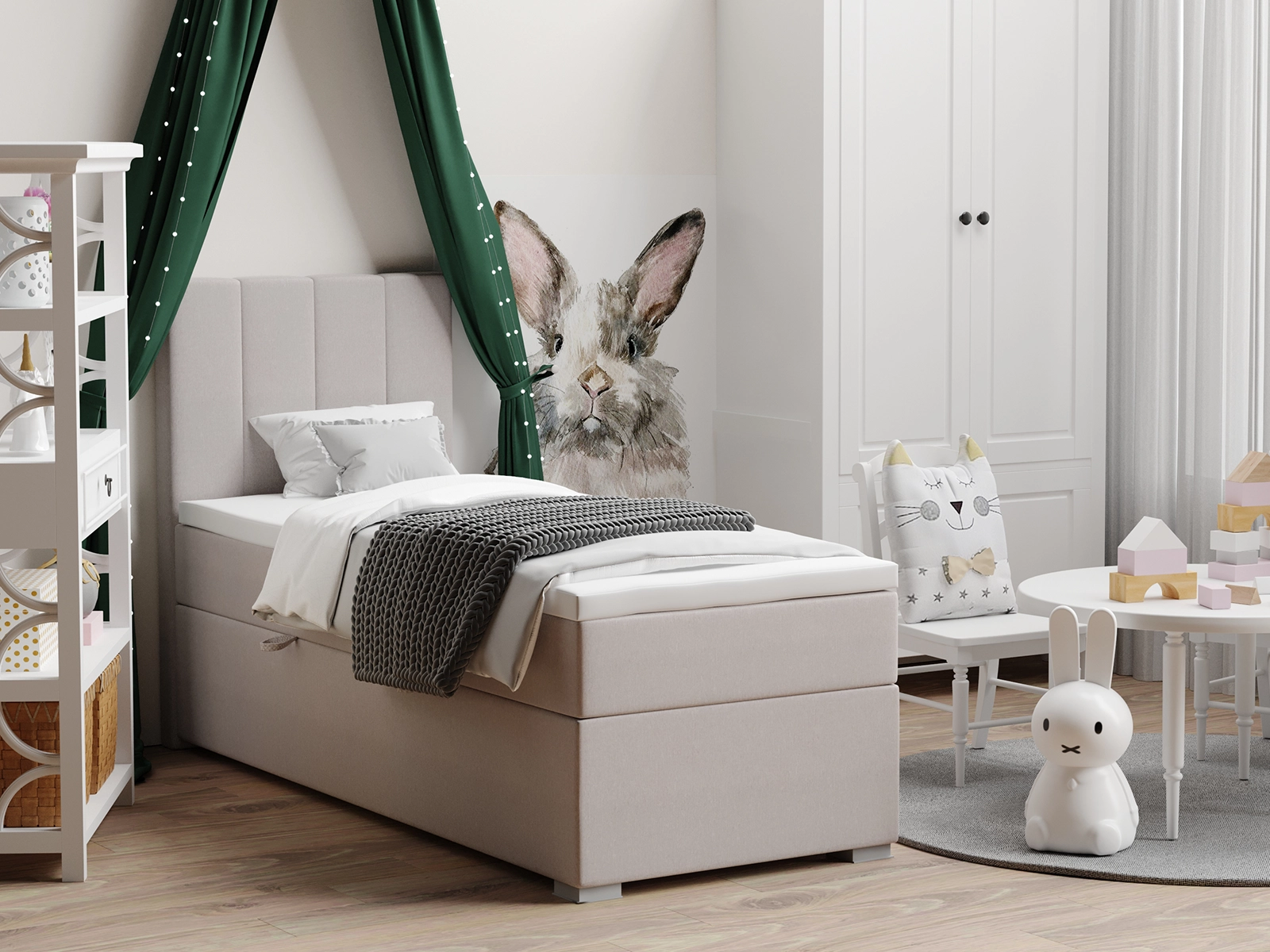Łóżko młodzieżowe 90x200 LYDIA beżowa tkanina z pojemnikiem oraz materacem bonellowym