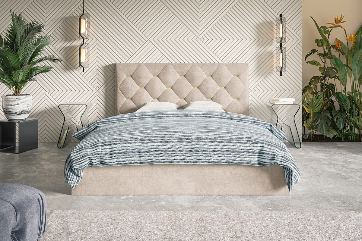 Łóżko tapicerowane 120x200 ANGELO SLIM z pojemnikiem i stelażem beżowy welur