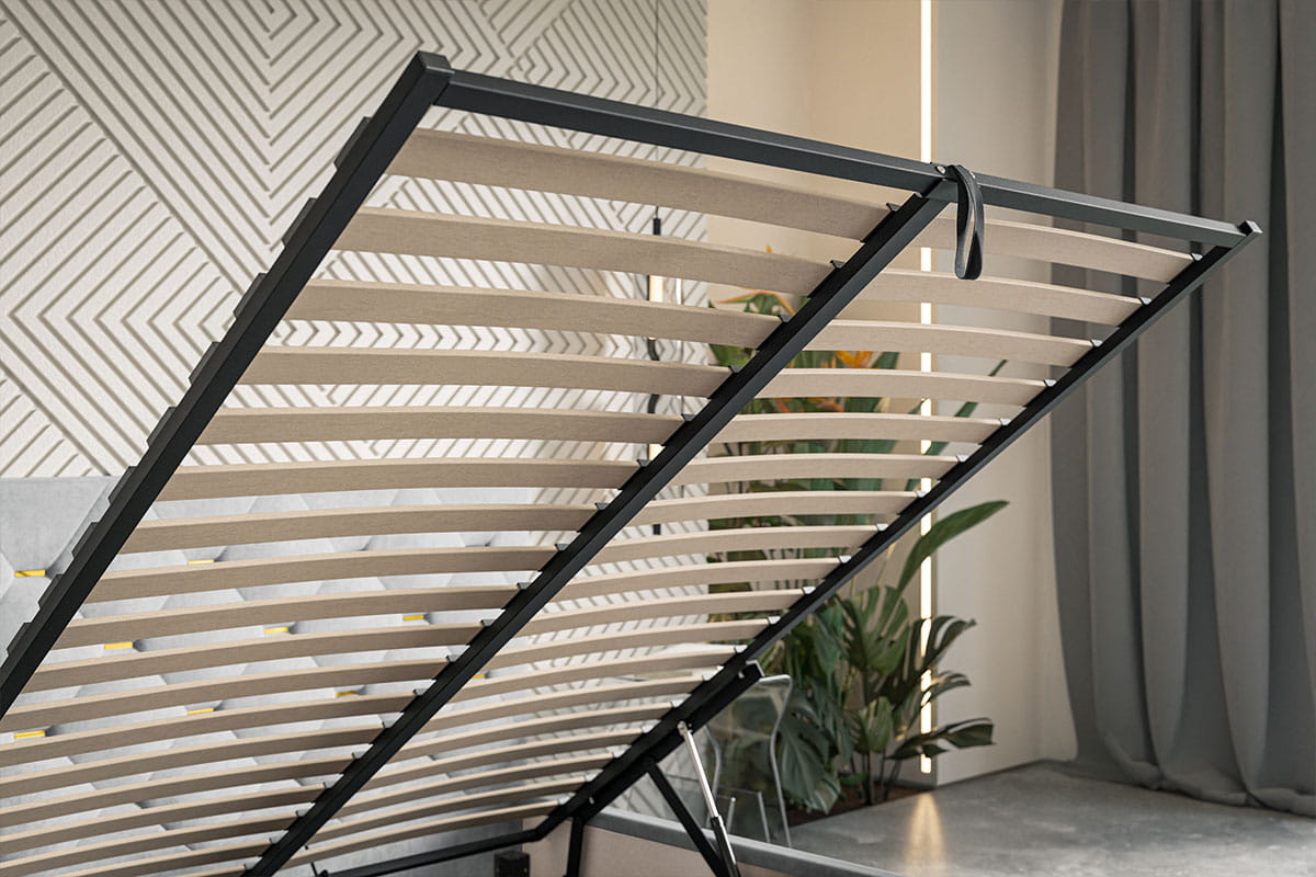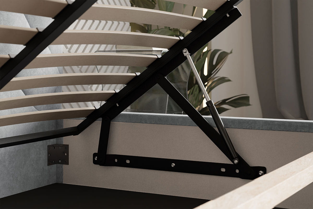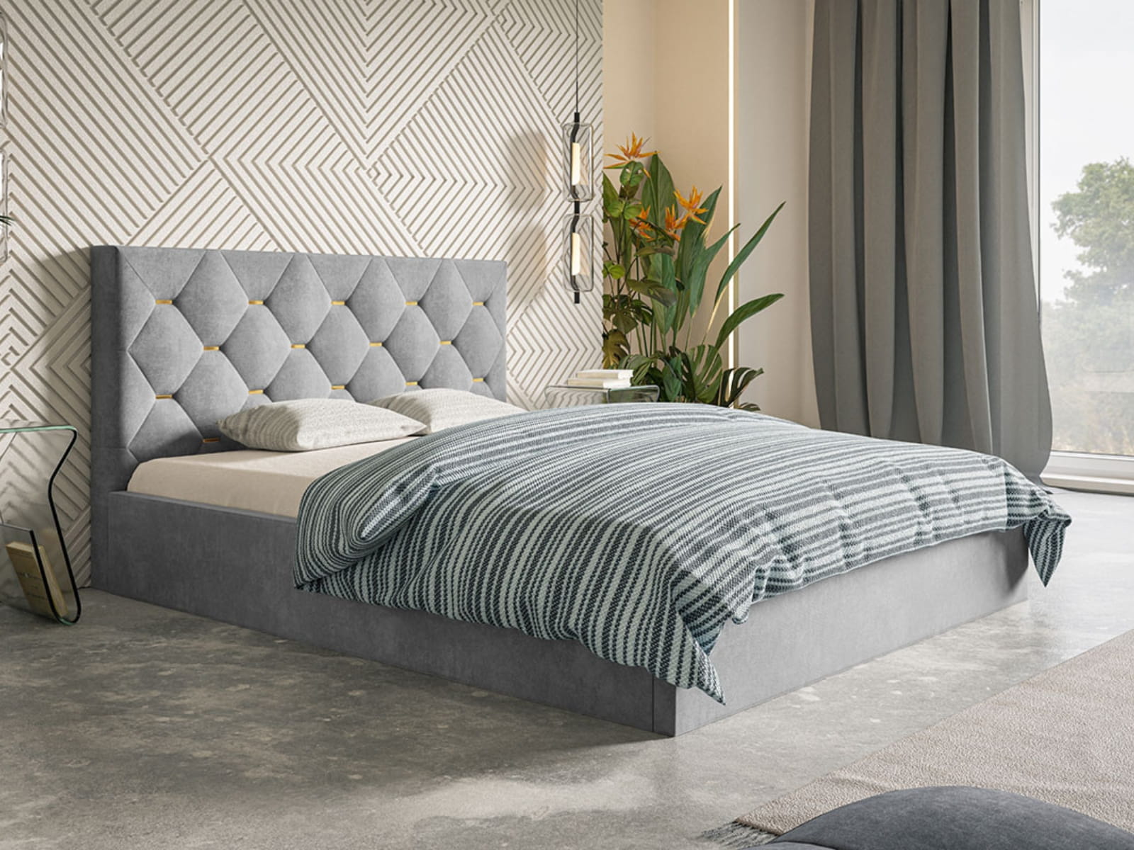Łóżko tapicerowane 120x200 ANGELO SLIM z pojemnikiem i stelażem szary welur