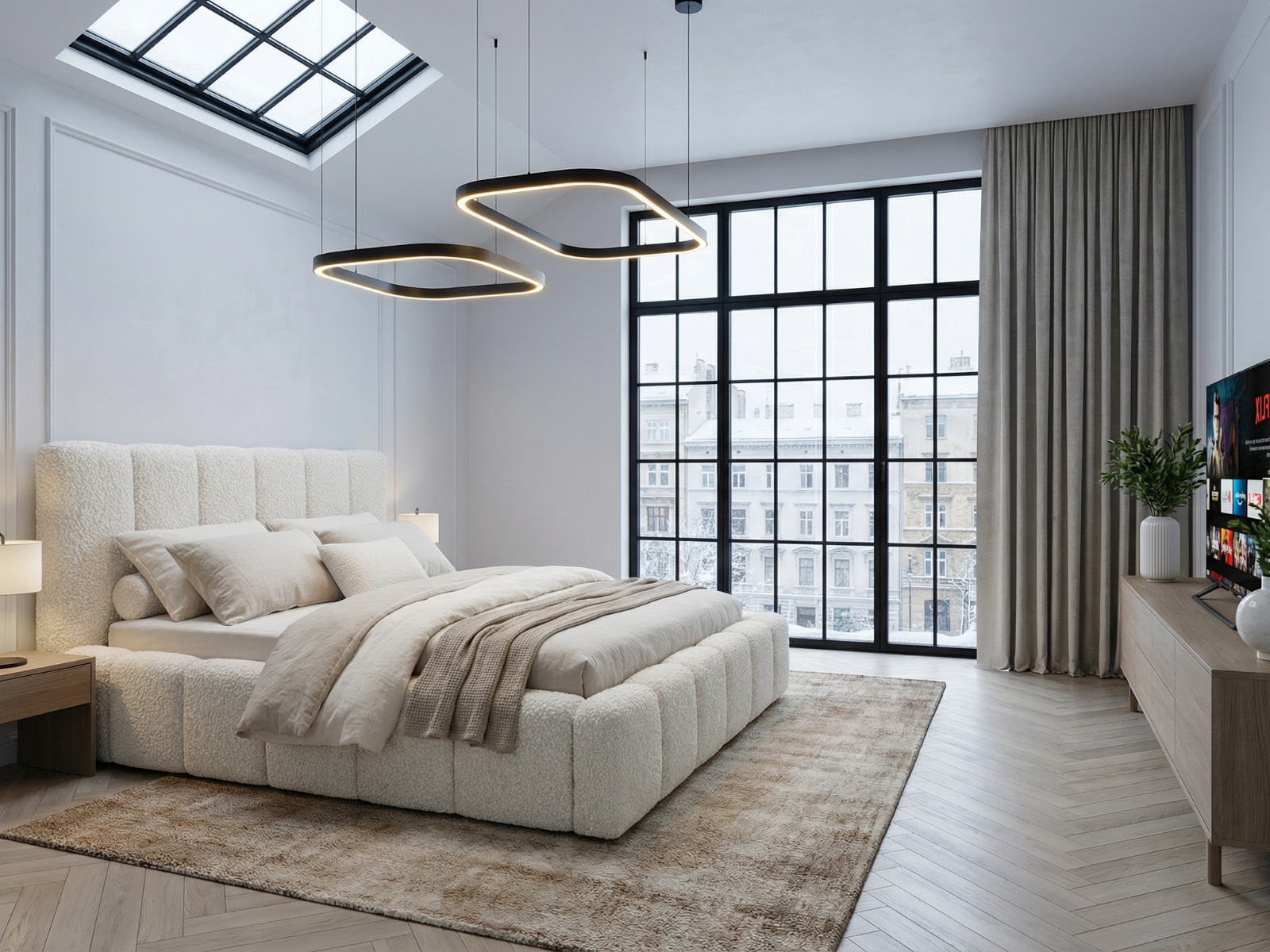 idealne jako łóżko małżeńskie tapicerowane do wnętrz nowoczesnych, loftowych, japandi i minimalistycznych.