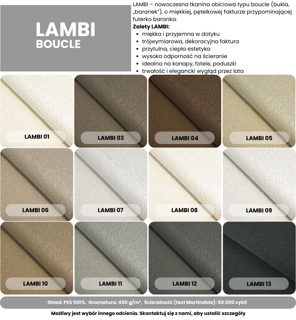 | Rodzaj tkaniny | tkanina boucle |