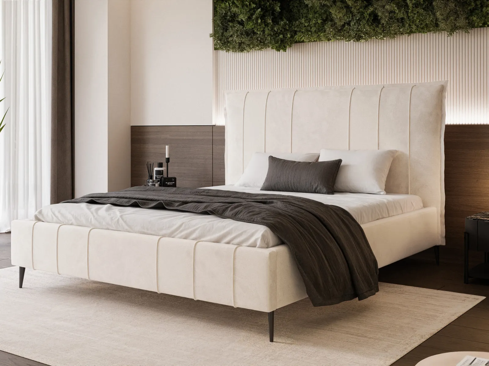 Całość uzupełniają czarne, smukłe nogi, które dodają lekkości i nadają łóżku modernistycznego charakteru - idealnego do wnętrz w stylu nowoczesnym, minimalistycznym lub skandynawskim.
