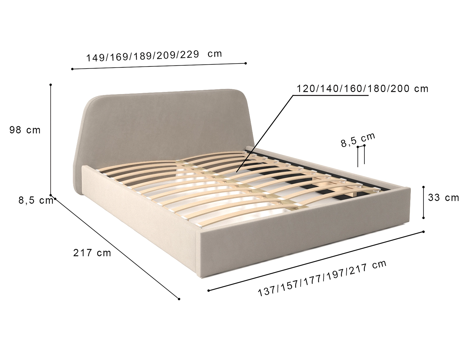 | Szerokość boku łóżka | 8,5 cm |