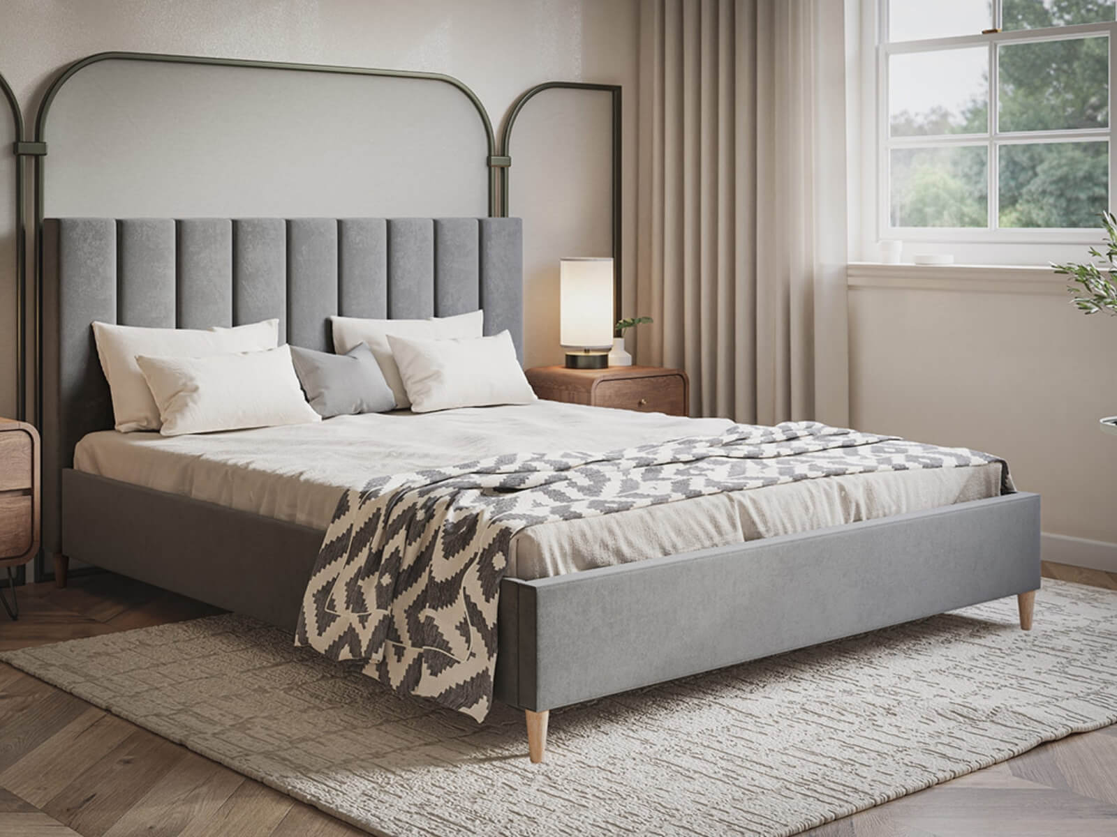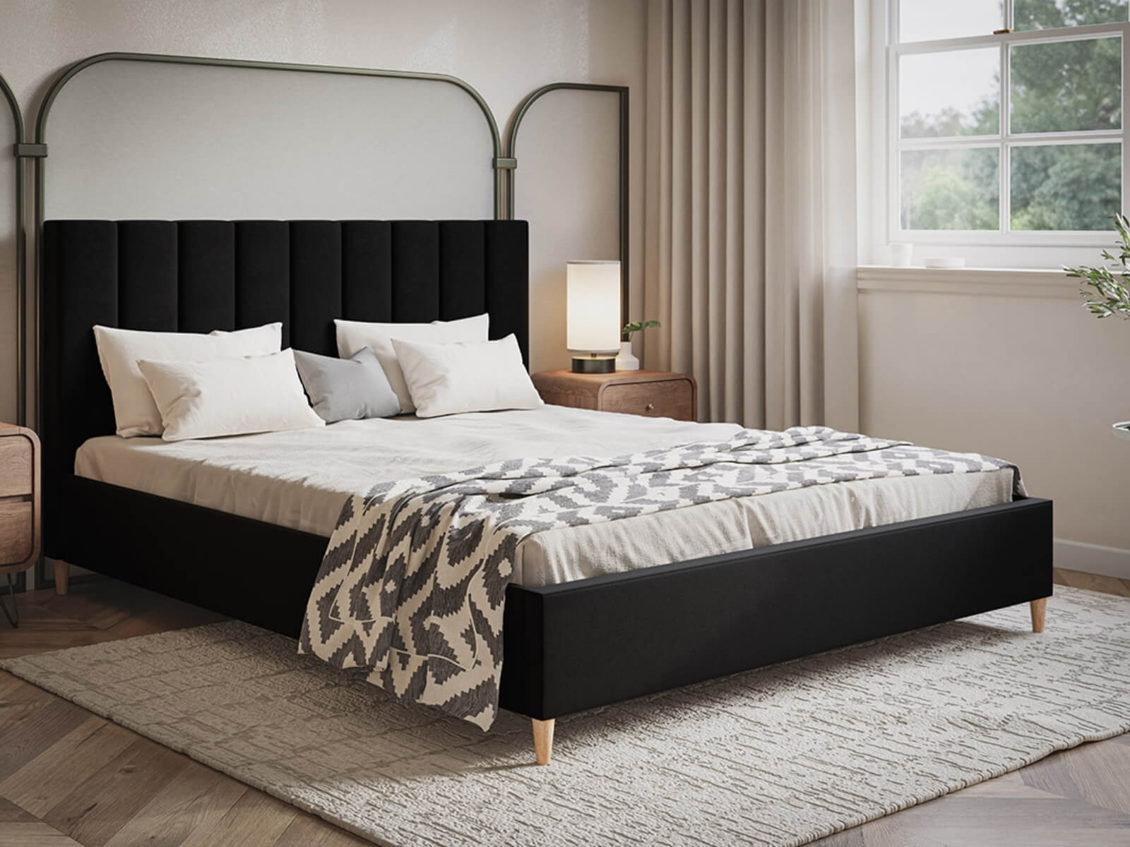 Łóżko tapicerowane Janas to idealny wybór do sypialni, która łączy skandynawski styl z nowoczesną elegancją. Wykonane z wysokiej jakości grafitowego weluru, prezentuje się niezwykle stylowo, a miękka tkanina wprowadza do wnętrza przytulność i elegancję. Łóżko Janas osadzone jest na solidnych, drewnianych nogach, które nadają konstrukcji stabilności oraz dodają lekkości typowej dla stylu skandynawskiego.