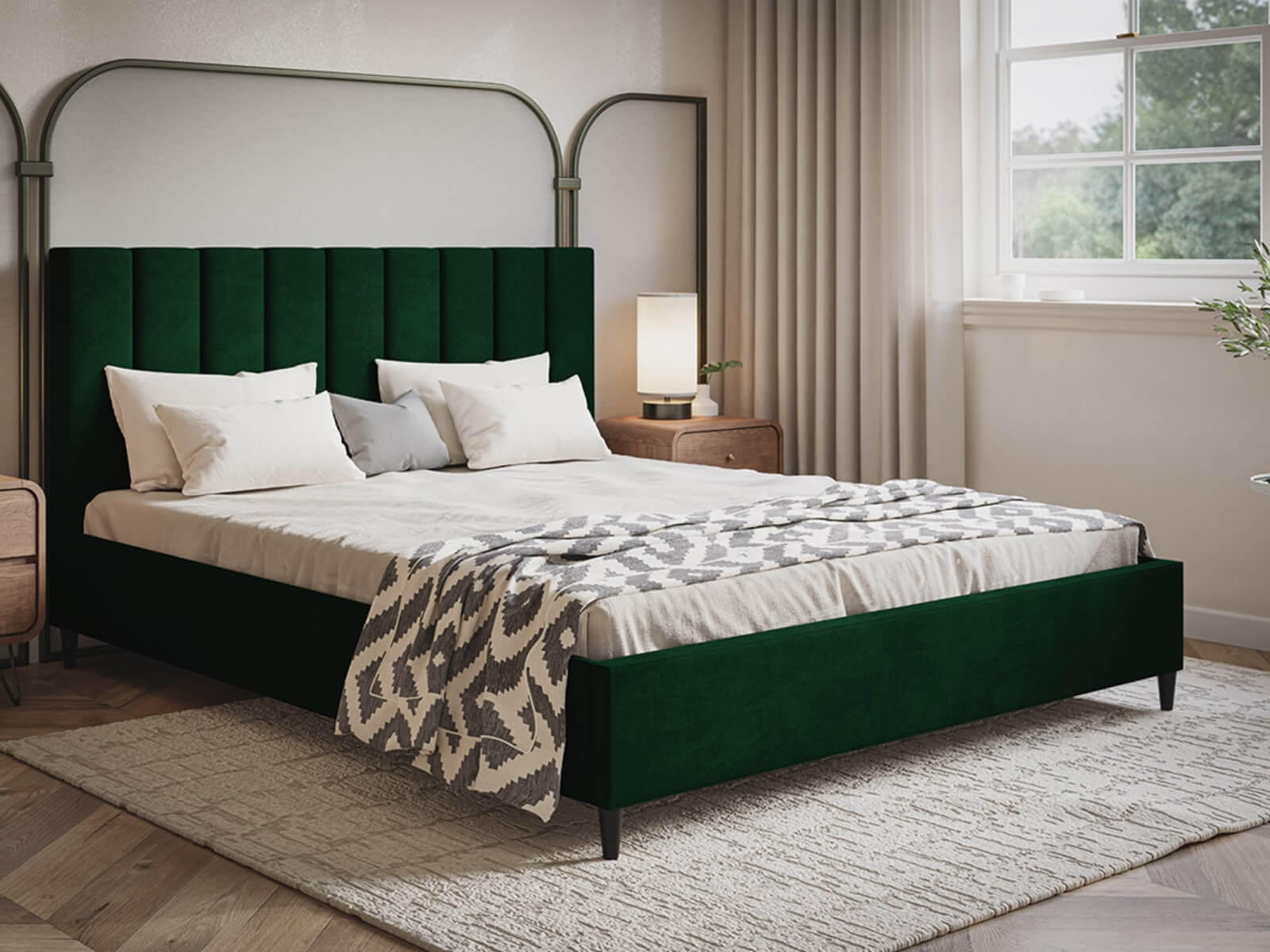 Ozdobny zagłówek nie tylko podkreśla estetykę łóżka, ale również zapewnia wygodne oparcie podczas wieczornego relaksu. Model Janas pozbawiony jest pojemnika na pościel, co sprawia, że zachowuje smukłą formę i doskonale pasuje do minimalistycznych wnętrz. Stelaż łóżka wykonany jest z trwałych materiałów, co zapewnia komfortowy sen i długą żywotność mebla.